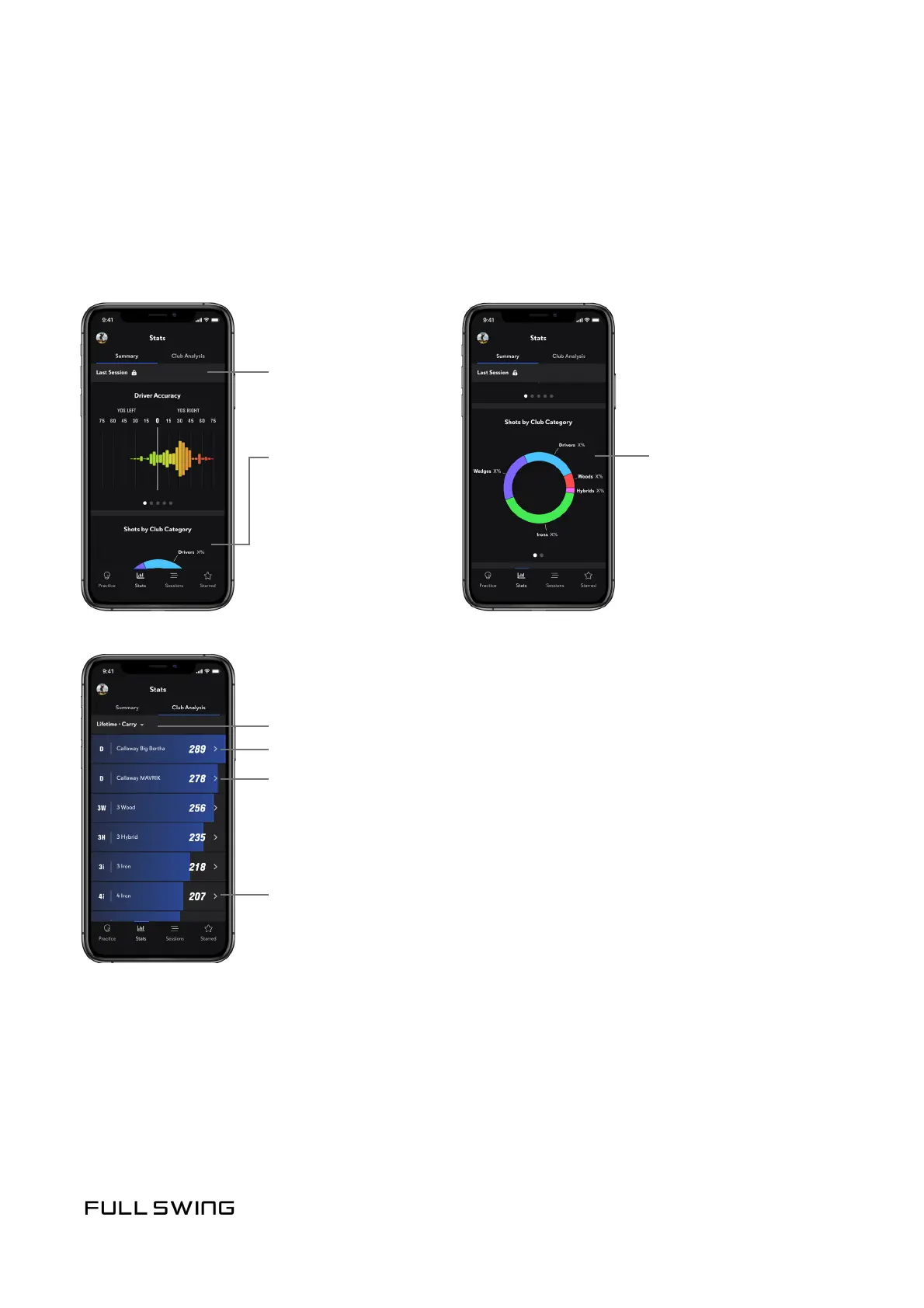 Use the Stats secon to view insights and detailed club analysis in order to understand shot