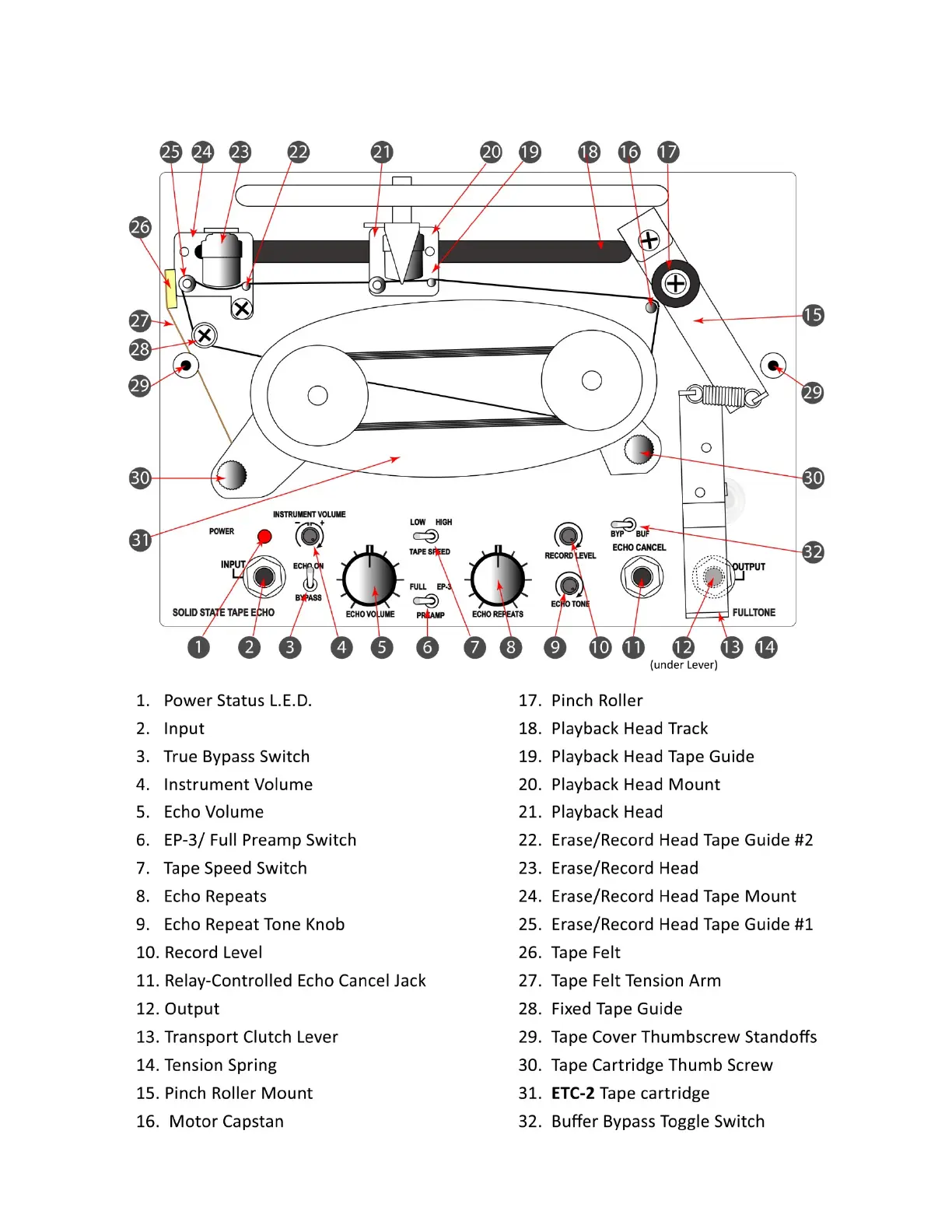 Fulltone Solid State Tape Echo - Initial Set-Up; Unit Preparation and Tape Cartridge; Power Connection and Grounding; Connecting Guitar and Initial Operation