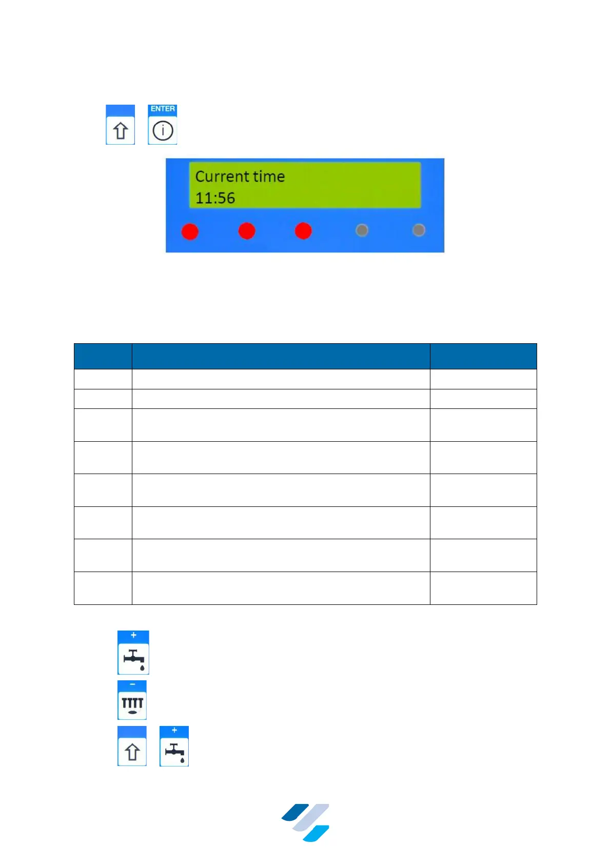 The next keys can be used in the User settings Mode:
