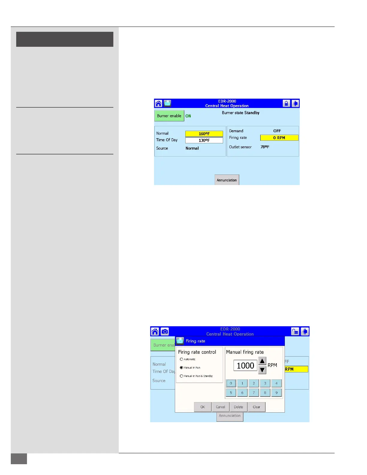 Central Heat Operation - Firing Rate Screen