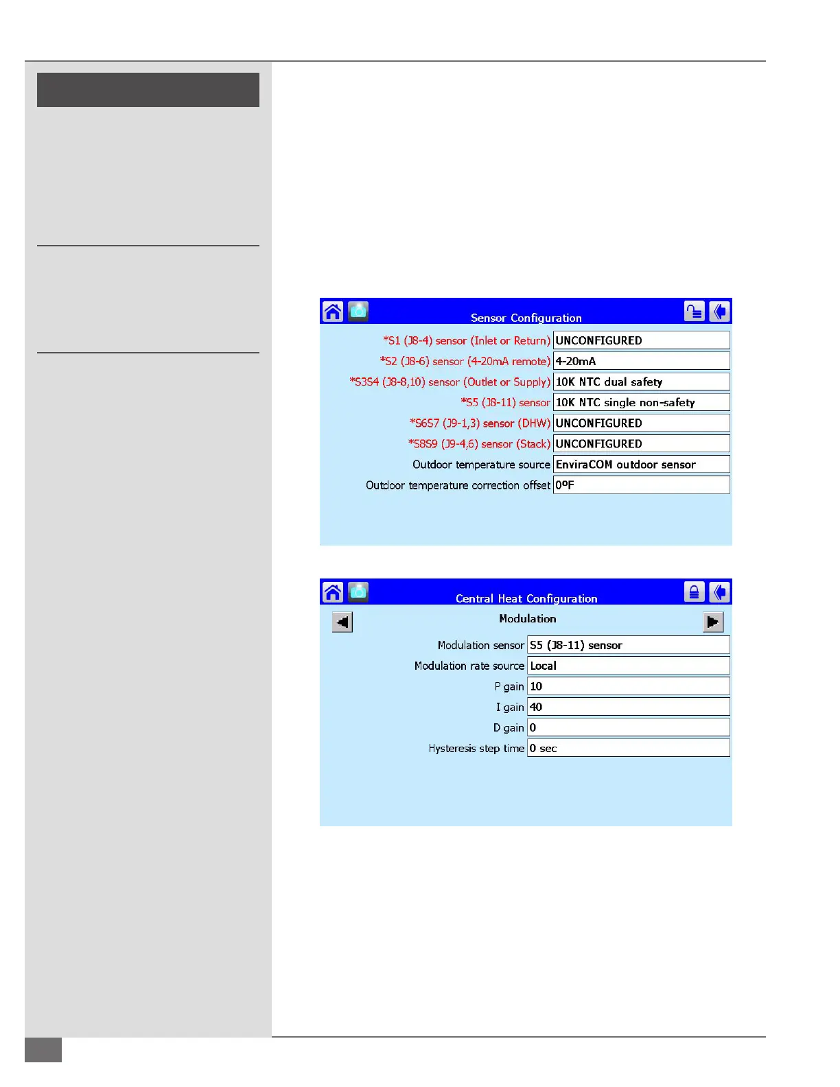 sensor for modulation only. Return to the boiler status screen and select