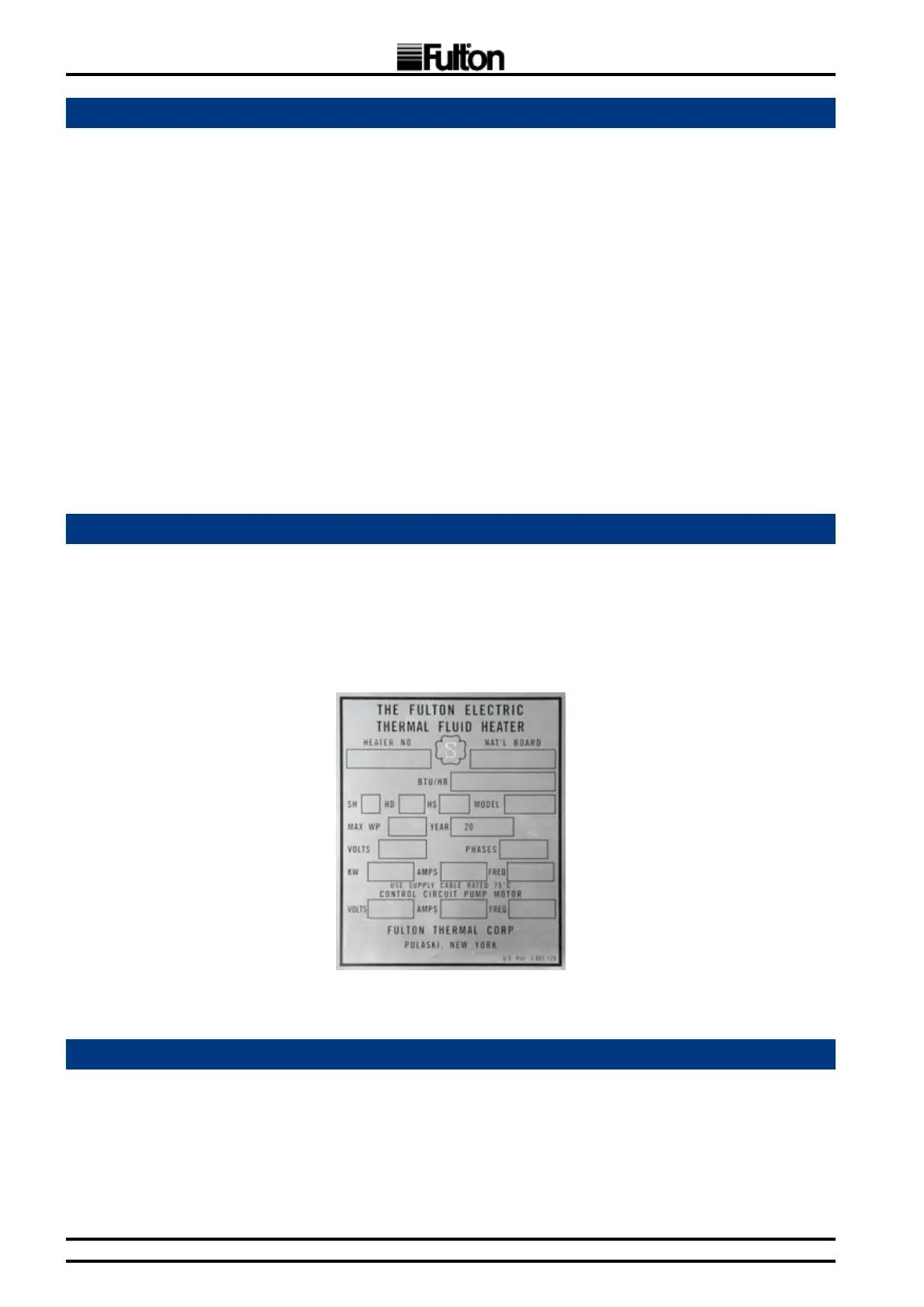 If the circulating pump motor is not supplied by Fulton Ltd, the motor starter will not be supplied.