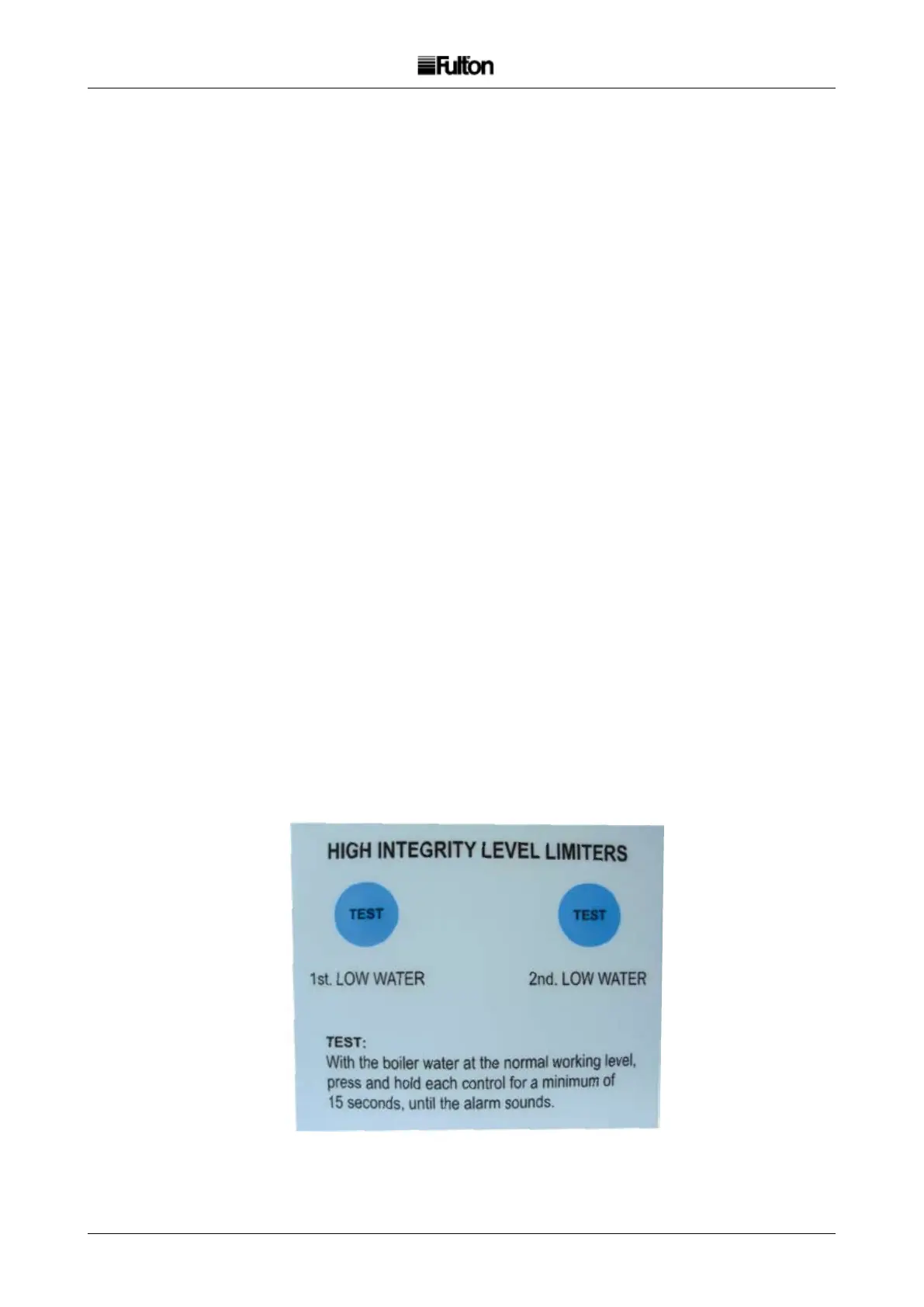 2. Press and hold the 1st. Low Water test button until (minimum 15 seconds) the low water alarm