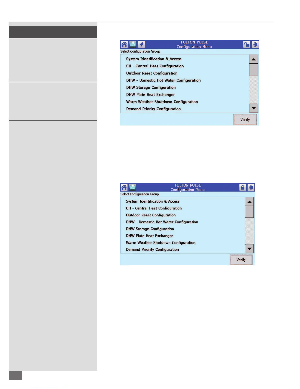 3. Arrow over to the Central Heat page (Figure 47). In this screen 3 of your