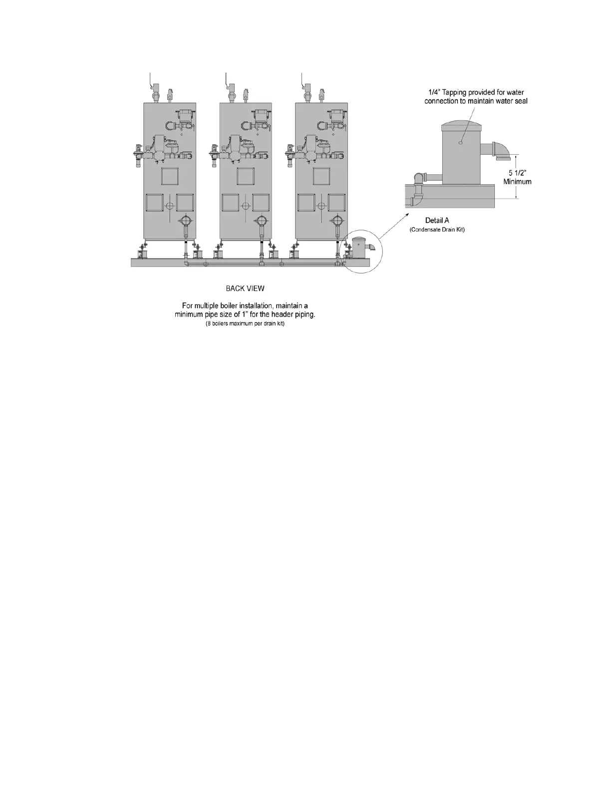 below the condensate outlet of the individual boiler and must remain