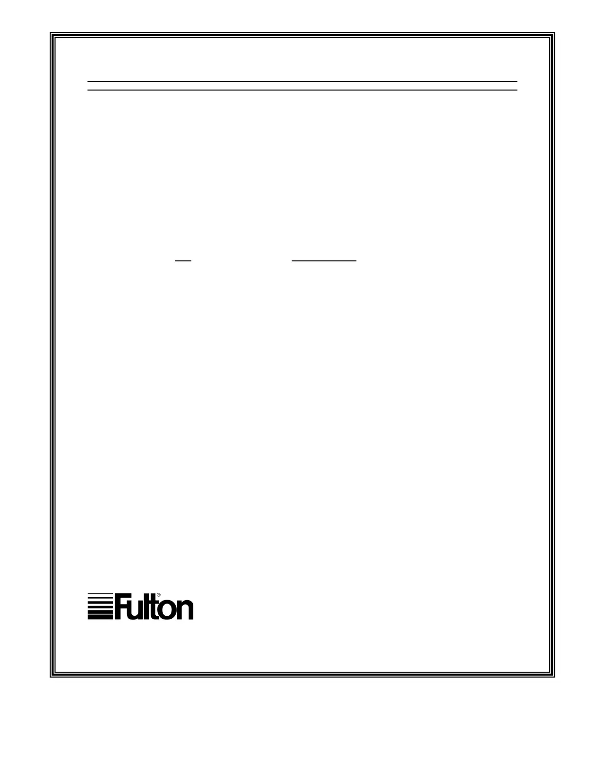 Fulton will repair or replace F.O.B. factory any part of the equipment of our manufacture that is found to be defective in workmanship
