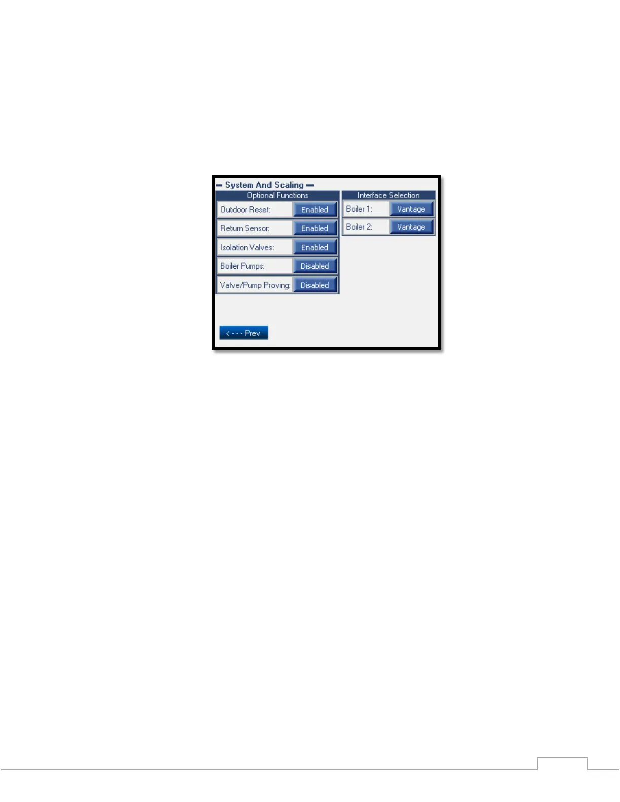 Interface Selection: Allows the selection of the boiler type. Used if boilers are added/removed or
