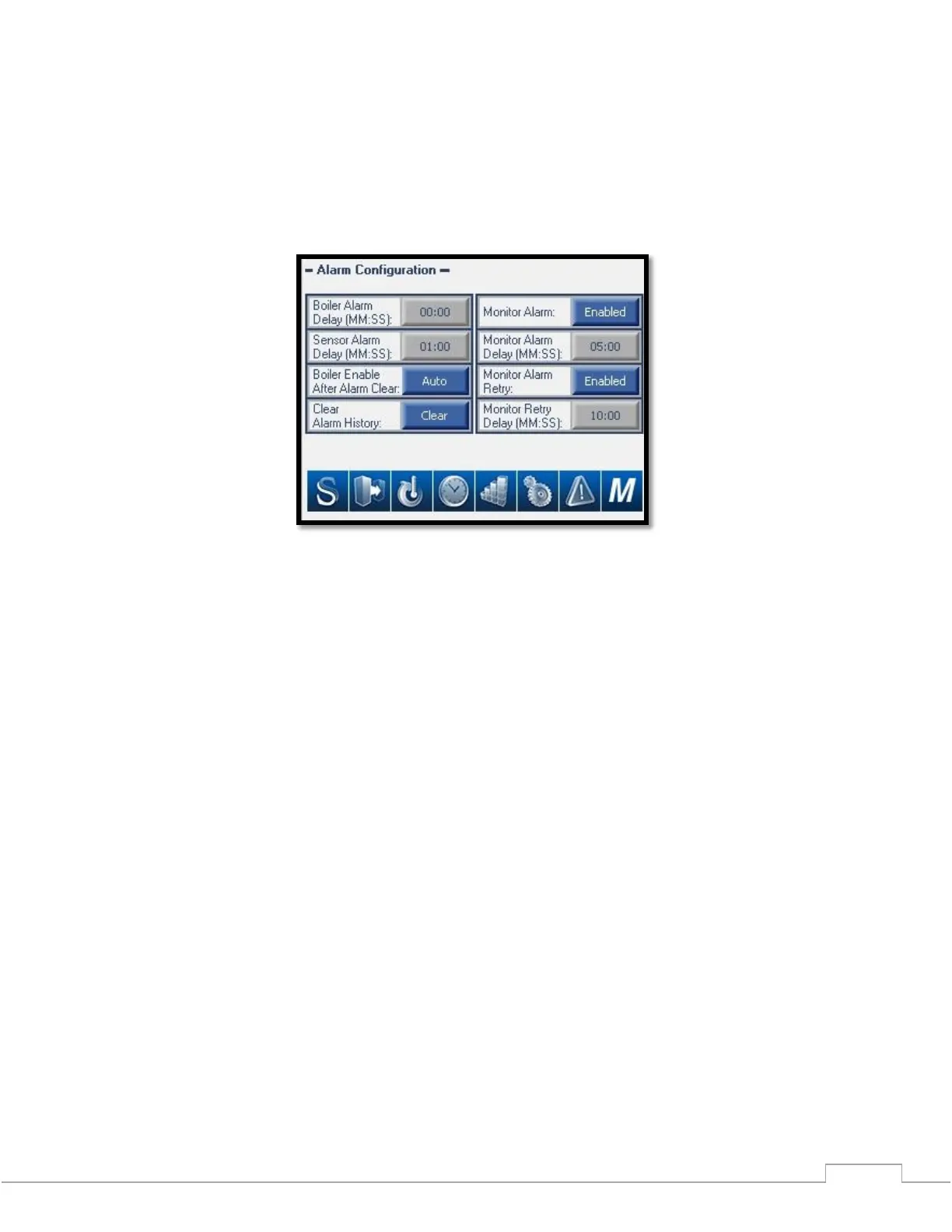 Boiler Alarm Delay: The boiler alarm delay will prevent nuisance alarms by making sure the alarm is on