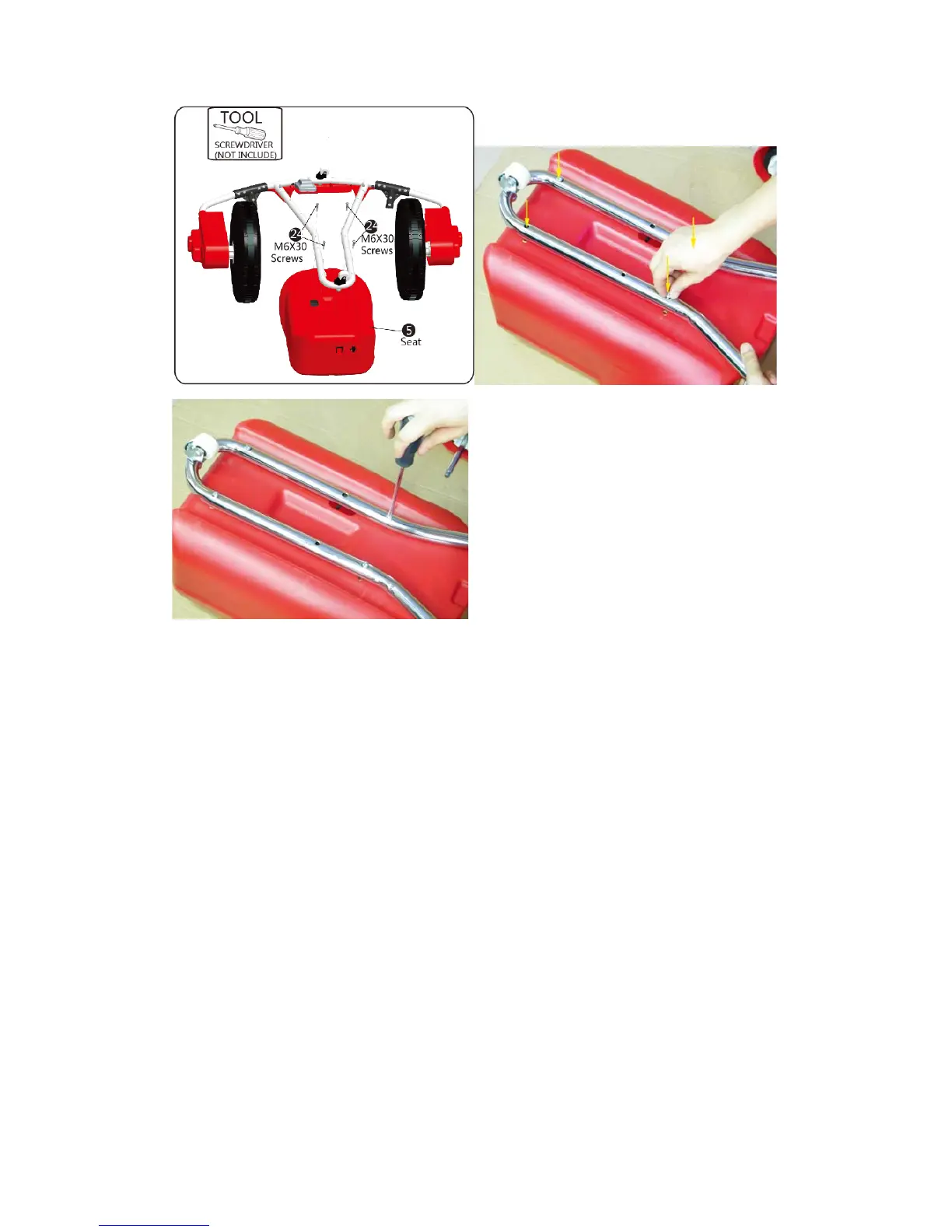 Turn over the whole vehicle, and fit it on the seat, align the holes, then screw in