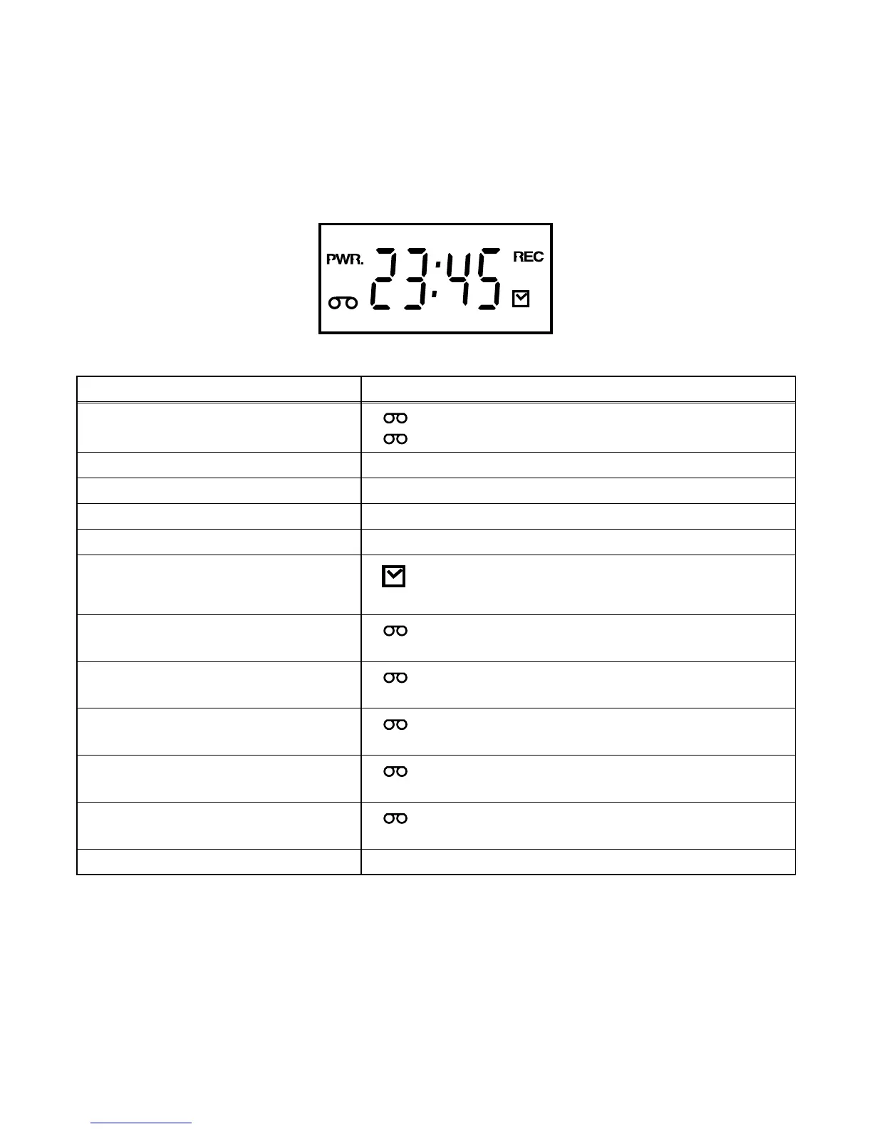 The following symbols will appear on the indicator panel to indicate the current mode or operation of the VCR.