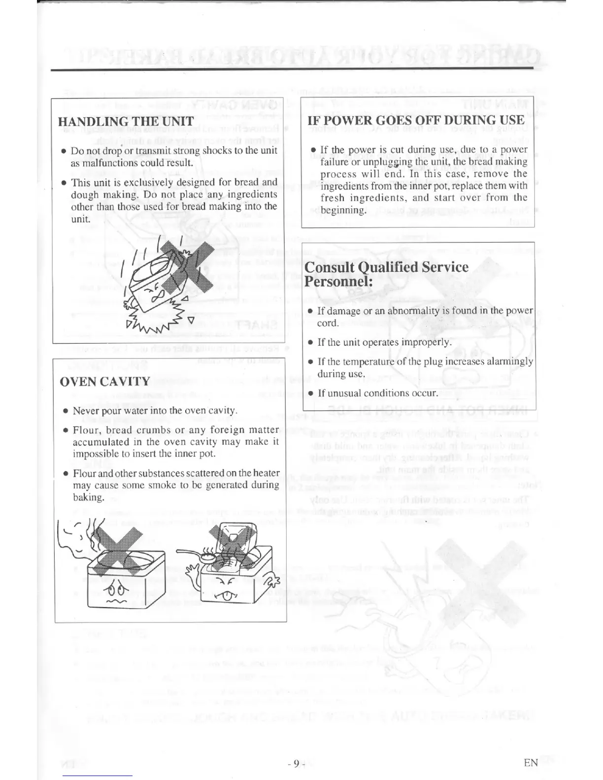 FUNAI B-2220 - Handling the Unit; Oven Cavity; If Power Goes off During Use