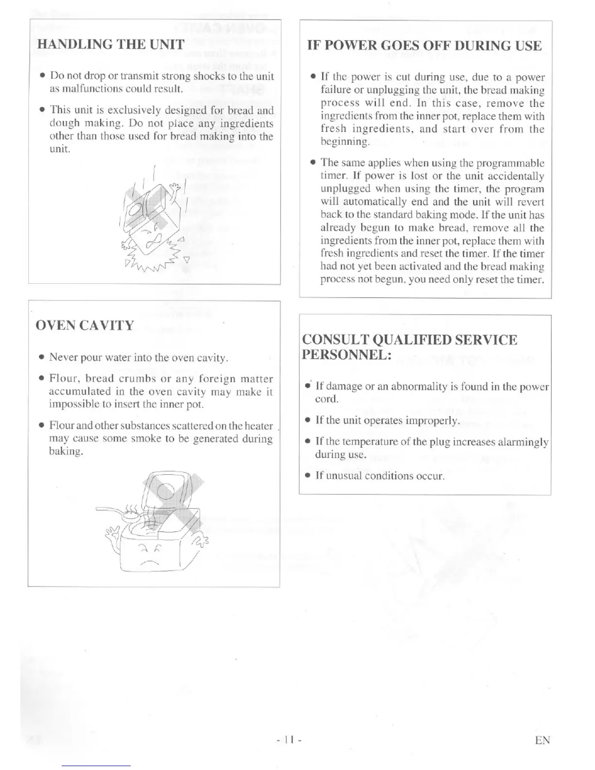 FUNAI B-4400 - Handling the Unit; Handling the Unit Safely; Power Outage Procedures; Oven Cavity Care