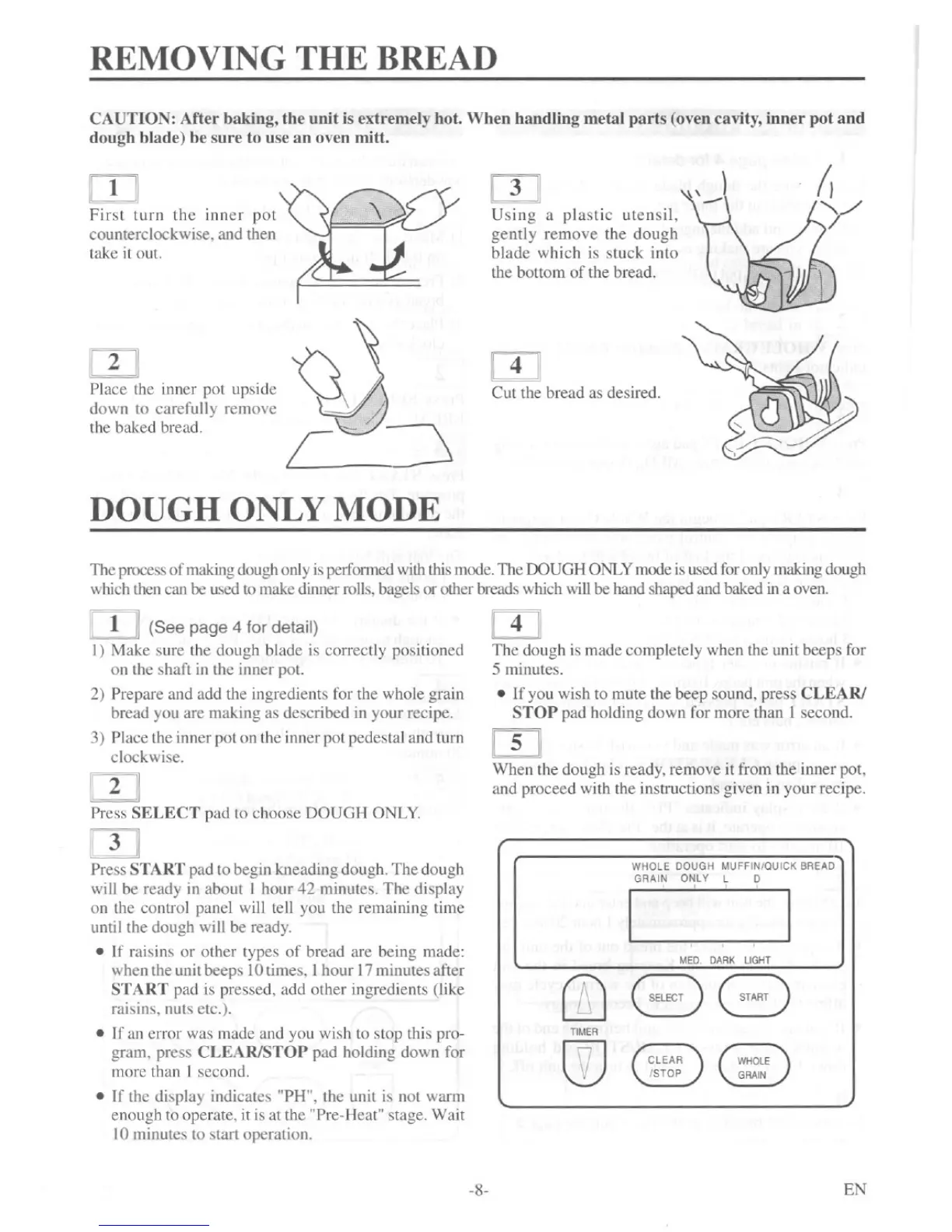 FUNAI B-4400 - Removing the Bread; Dough Only Mode