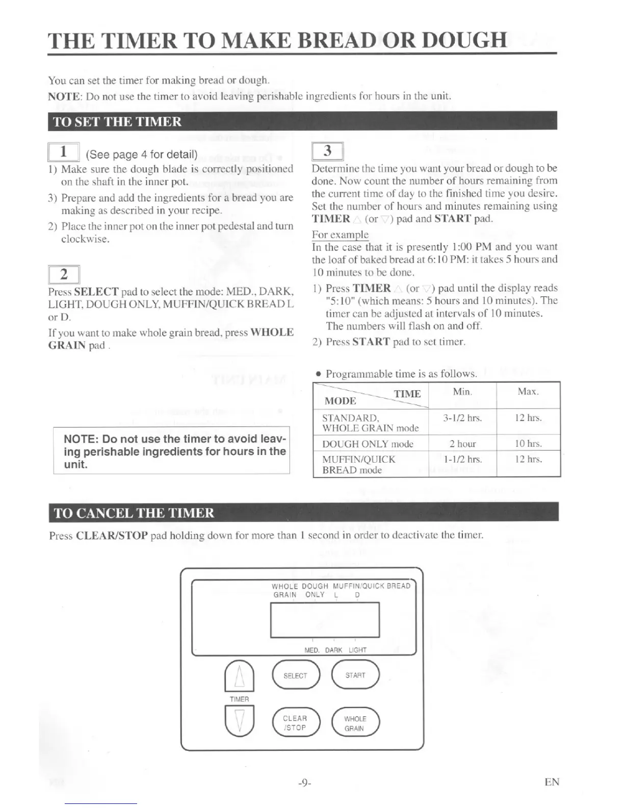 FUNAI B-4400 - The Timer to Make Bread or Dough; To Set the Timer; To Cancel the Timer