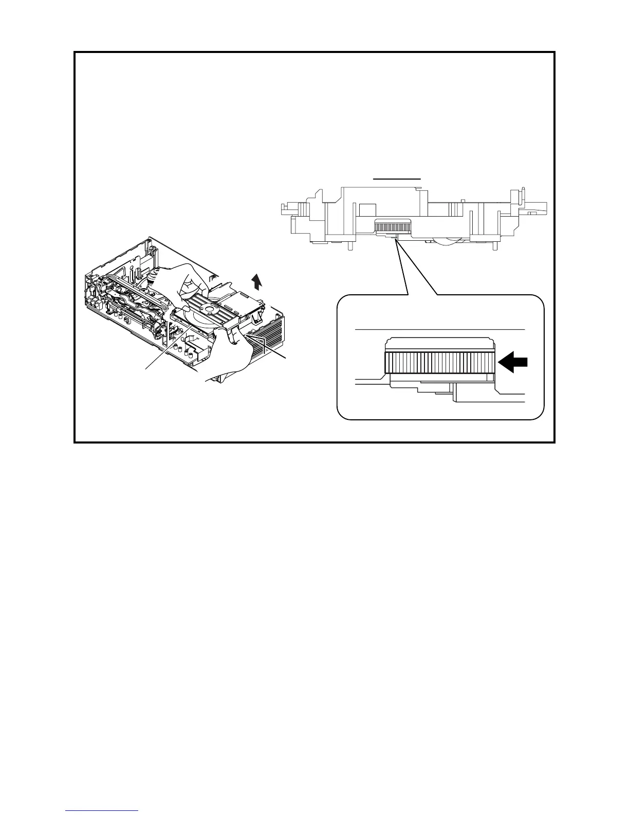 3. While lifting up the DVD Mechanism, rotate the roulette in the direction of the arrow as