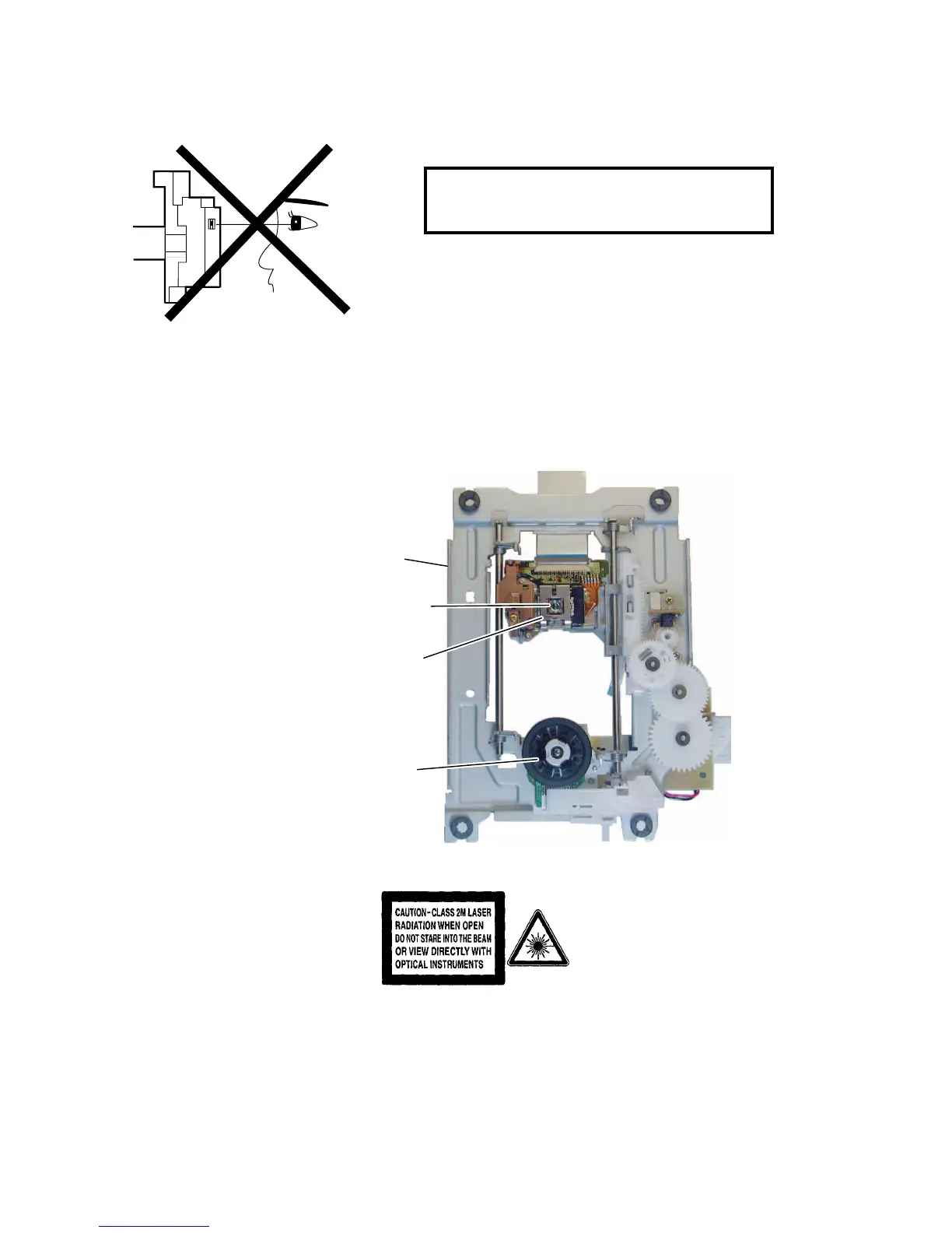 your eyes at least 30 cm away from the pickup lens when the diode is turned on. Do not look directly at the laser