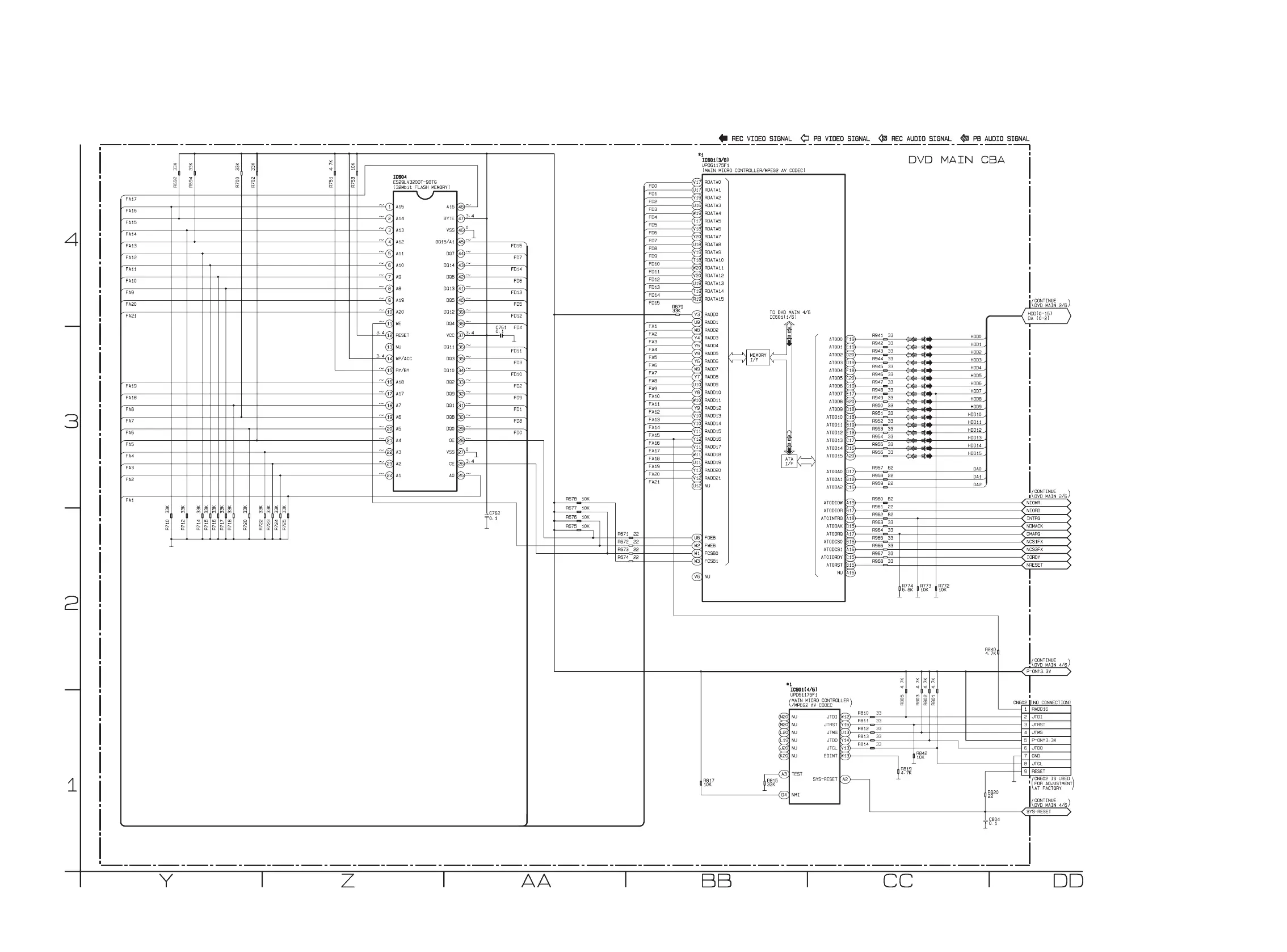 2. IC601 is divided into six and shown as IC601 (1/6) ~ IC601 (6/6) in this DVD Main Schematic Diagram Section.