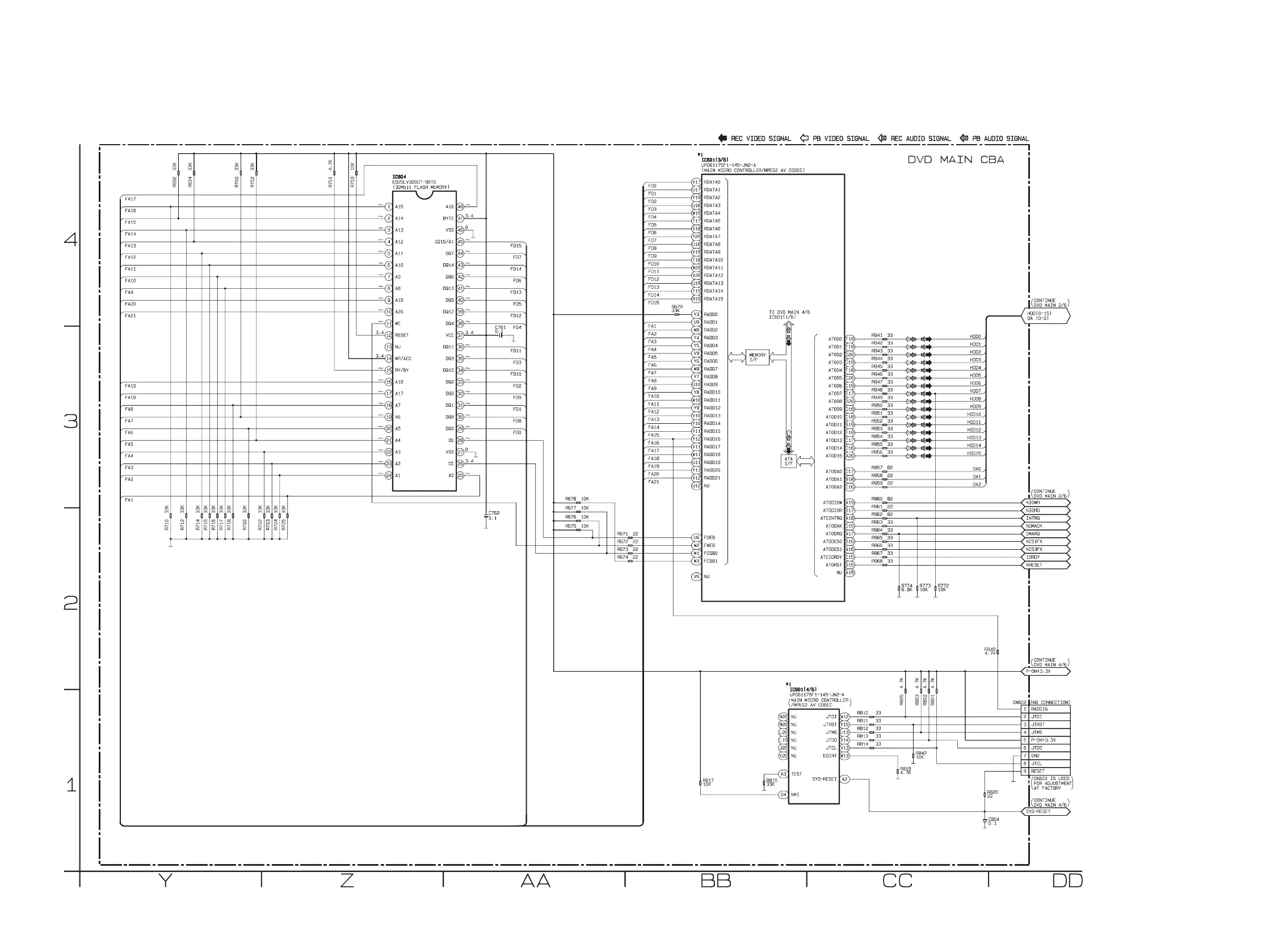 2. IC601 is divided into six and shown as IC601 (1/6) ~ IC601 (6/6) in this DVD Main Schematic Diagram Section.