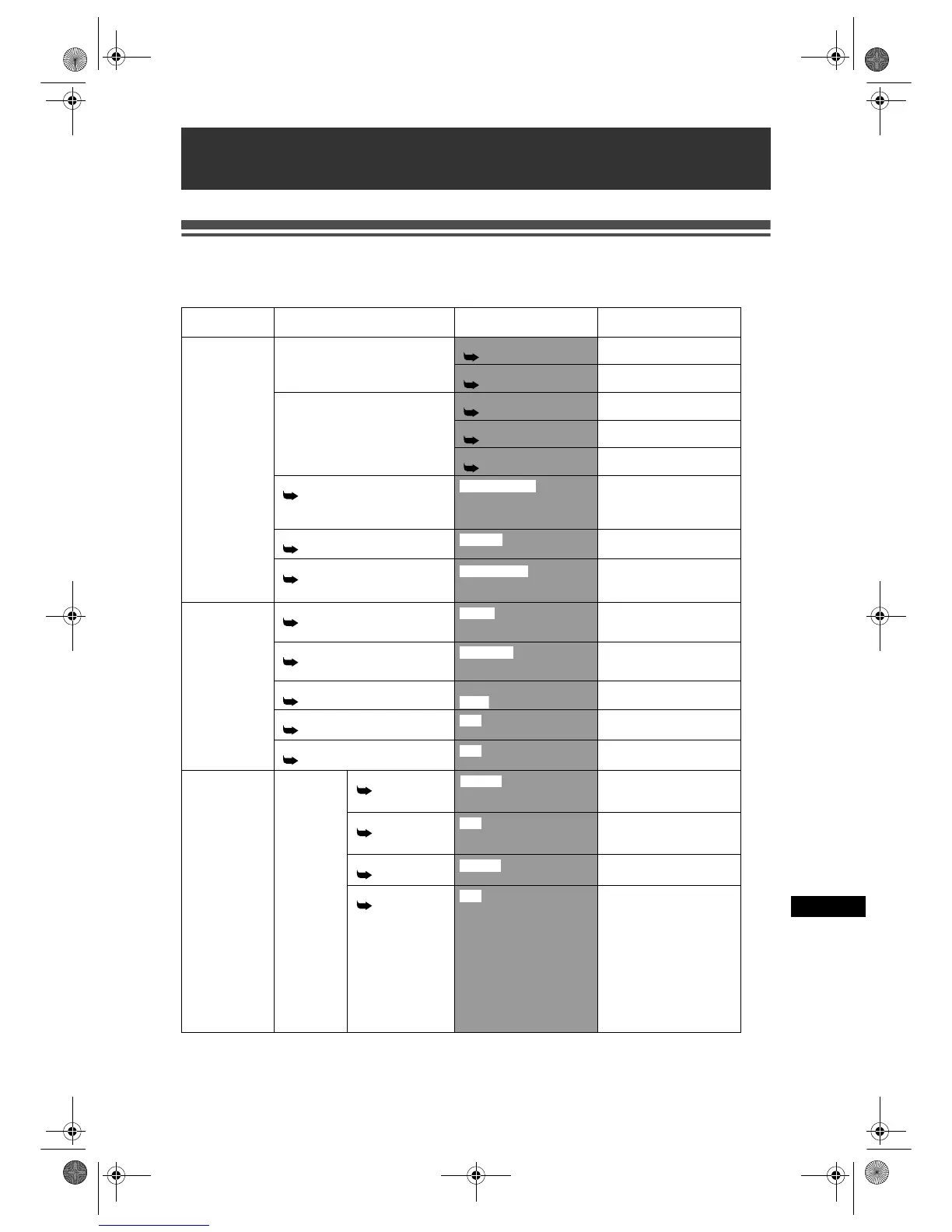 The following table shows the items which you can change the setting and their default settings. Refer to the