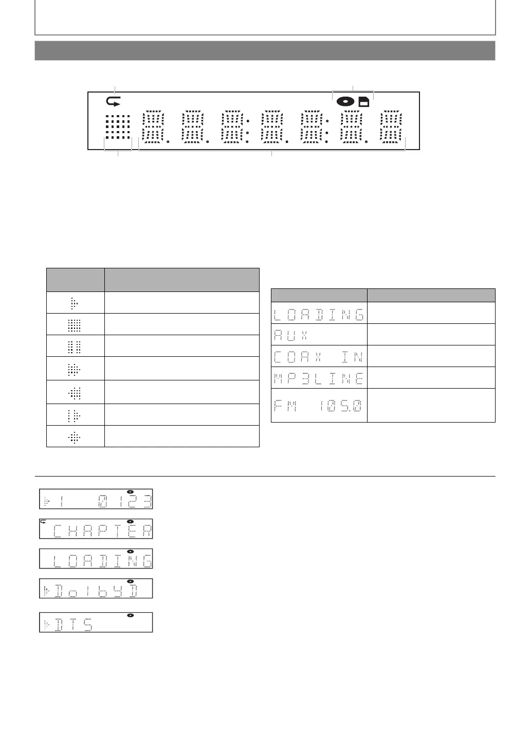 4. Displays source mode status (refer to table B below) or information such as title number, elapsed playing time,