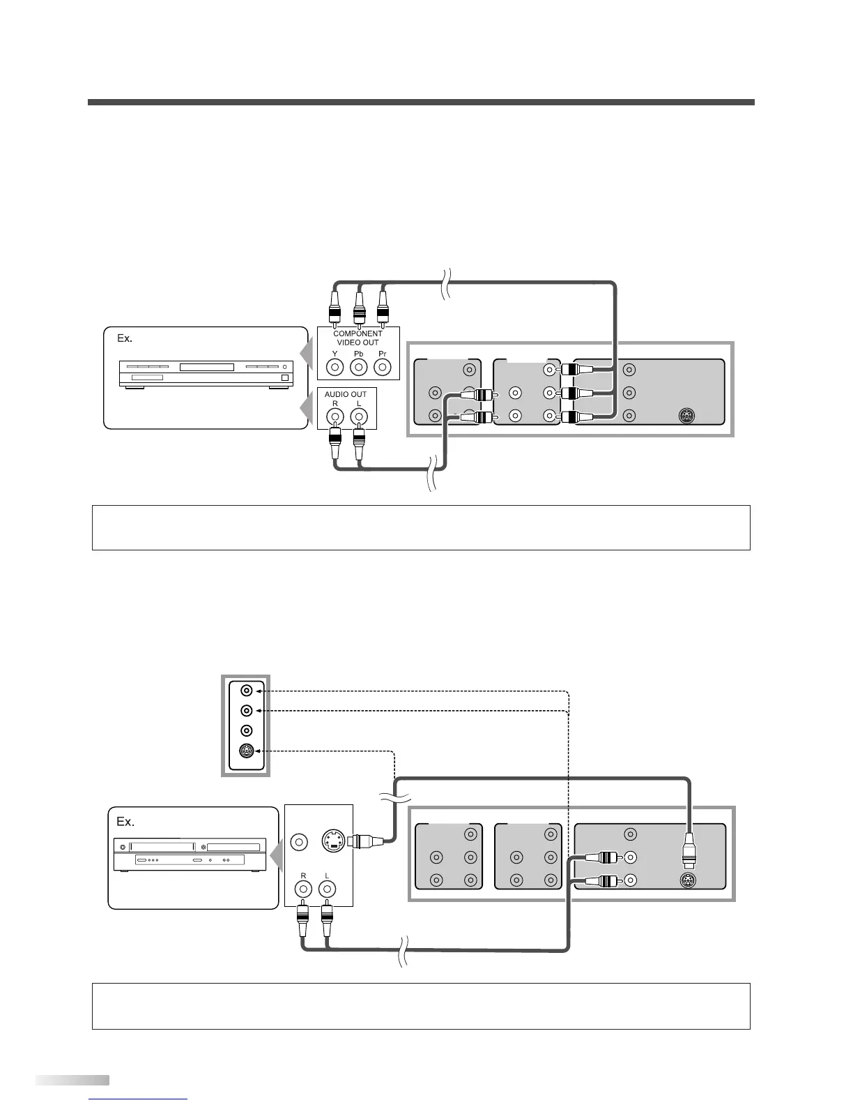 If you connect to your TV’s COMPONENT2 input jack, connect audio cables to the AUDIO L/R jacks of COM-