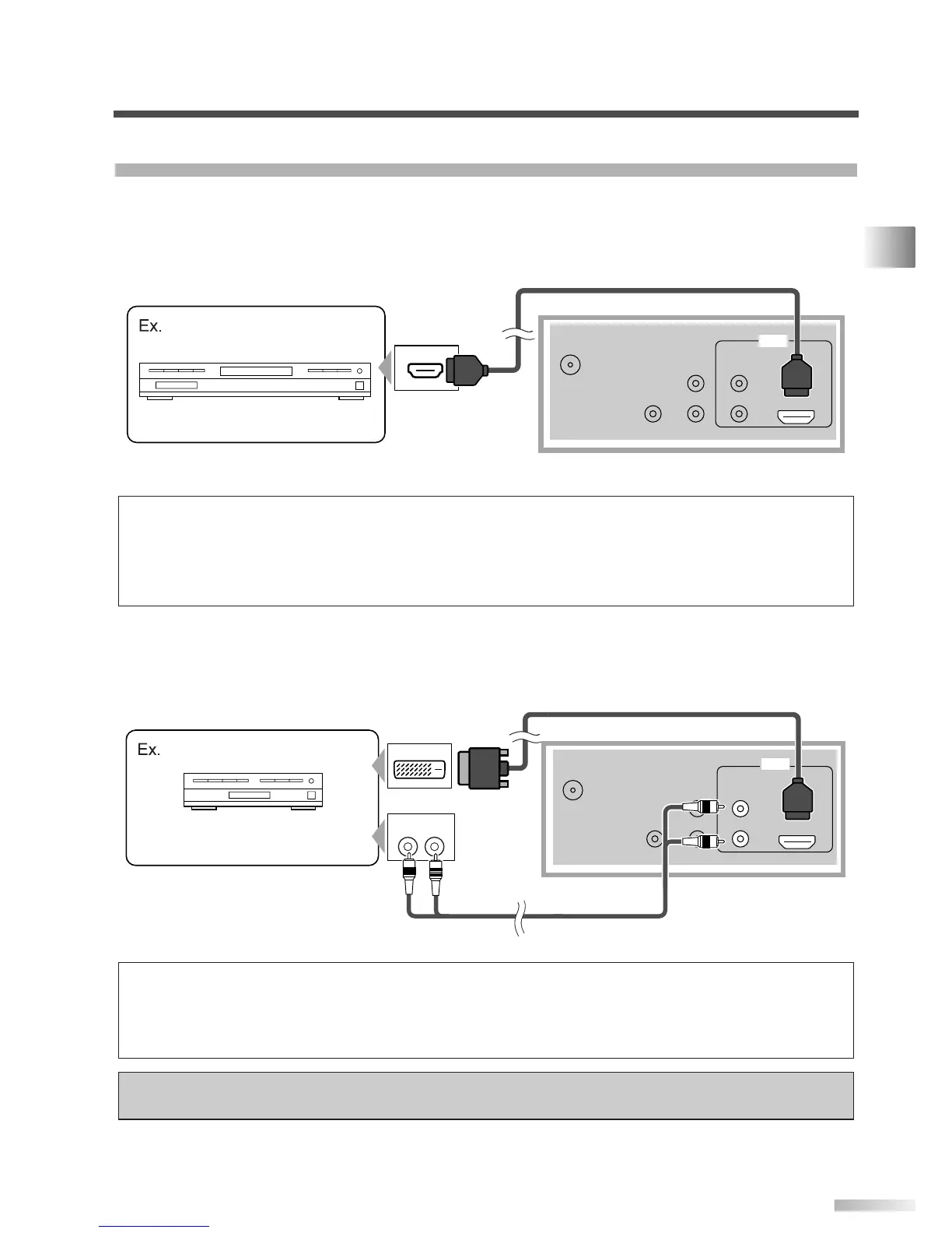 2) When your video device has a DVI output jack, connect the HDMI conversion cable (not included) from the