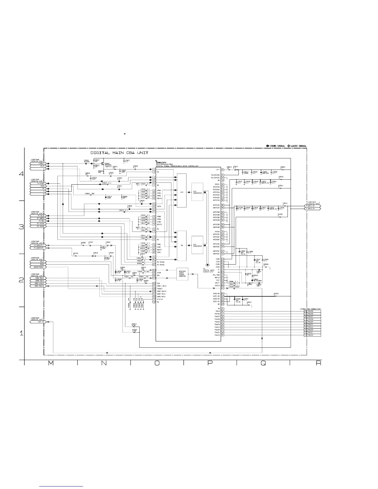 IC3501 is divided into four and shown as IC3501 (1/4) ~ IC3501 (4/4) in this Digital Main Schematic Diagram Section.