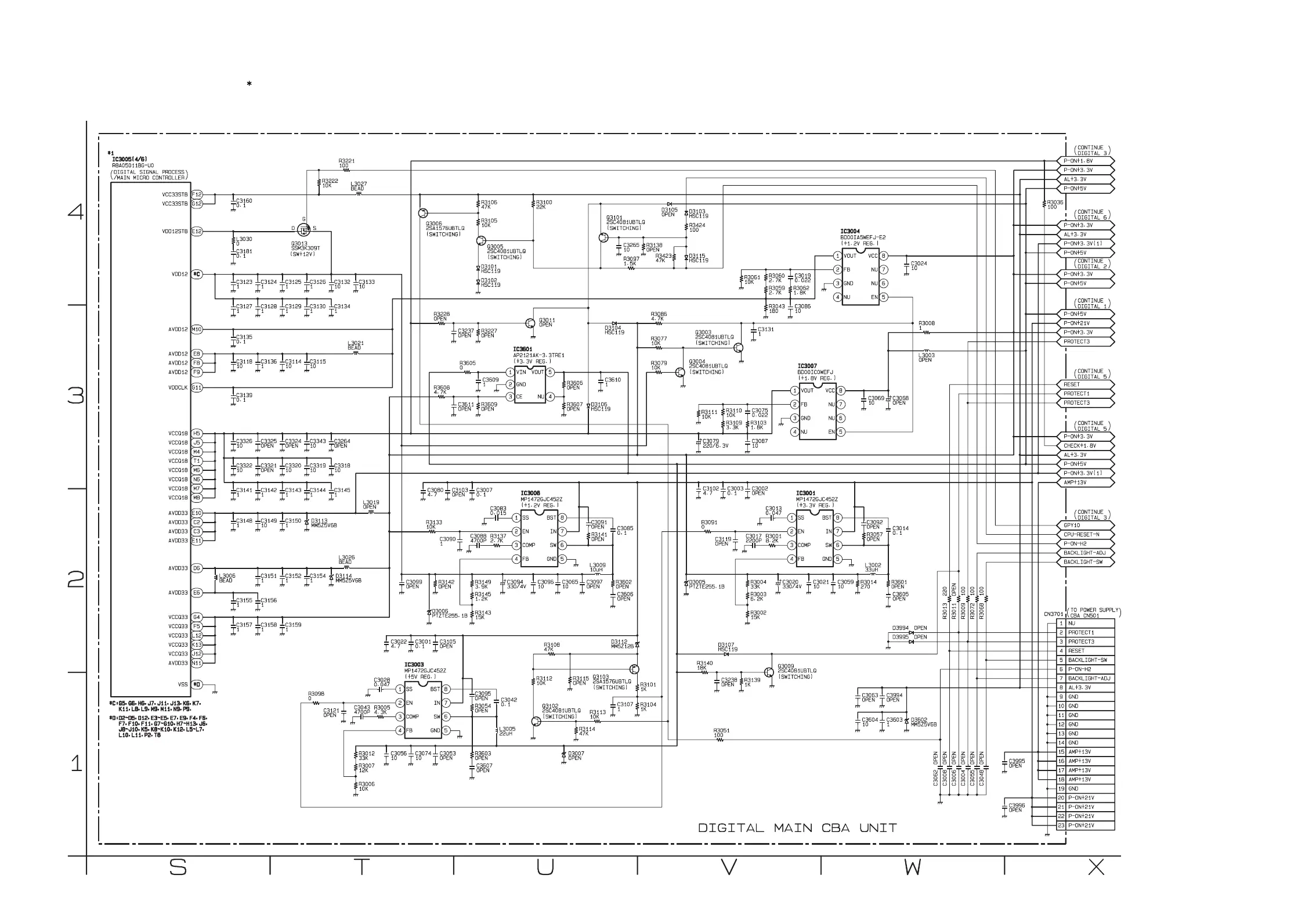 IC3005 is divided into six and shown as IC3005 (1/6) ~ IC3005 (6/6) in this Digital Main Schematic Diagram Section.