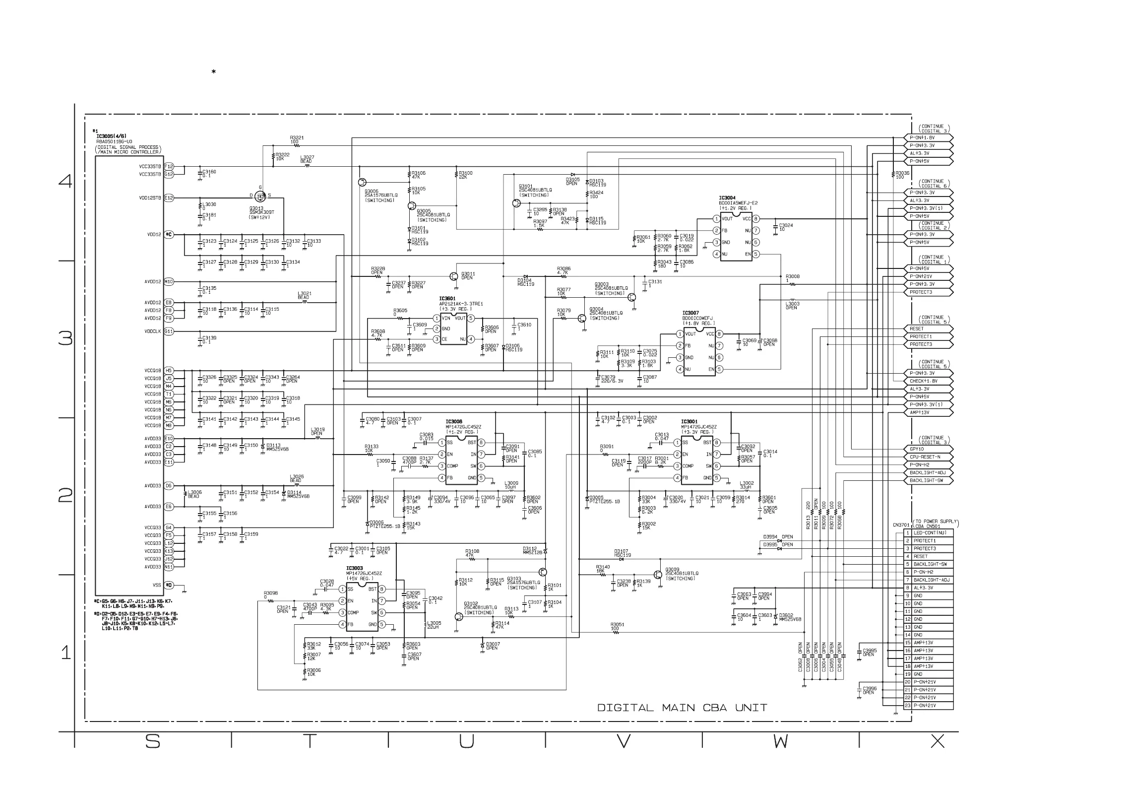 IC3005 is divided into six and shown as IC3005 (1/6) ~ IC3005 (6/6) in this Digital Main Schematic Diagram Section.