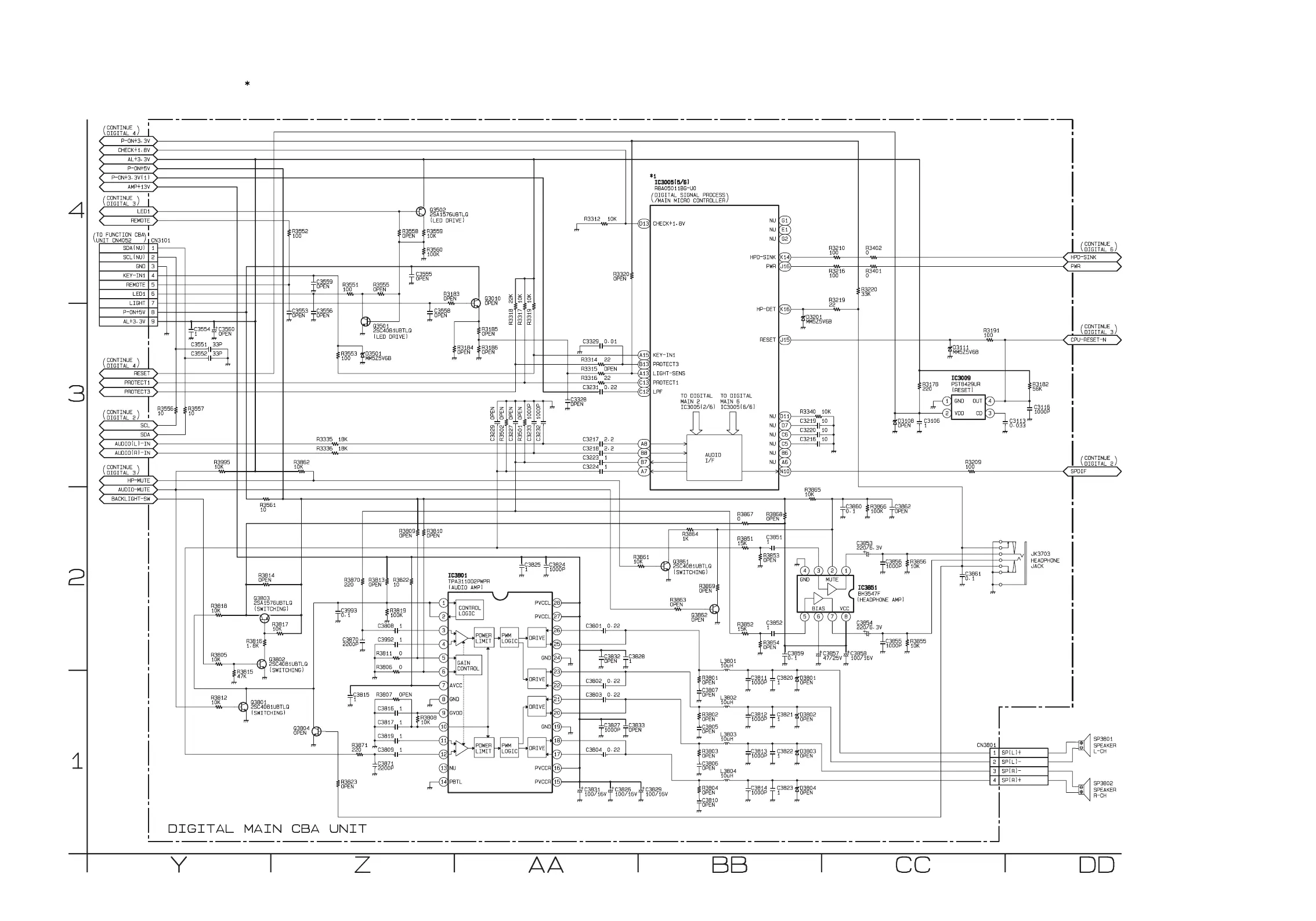 IC3005 is divided into six and shown as IC3005 (1/6) ~ IC3005 (6/6) in this Digital Main Schematic Diagram Section.