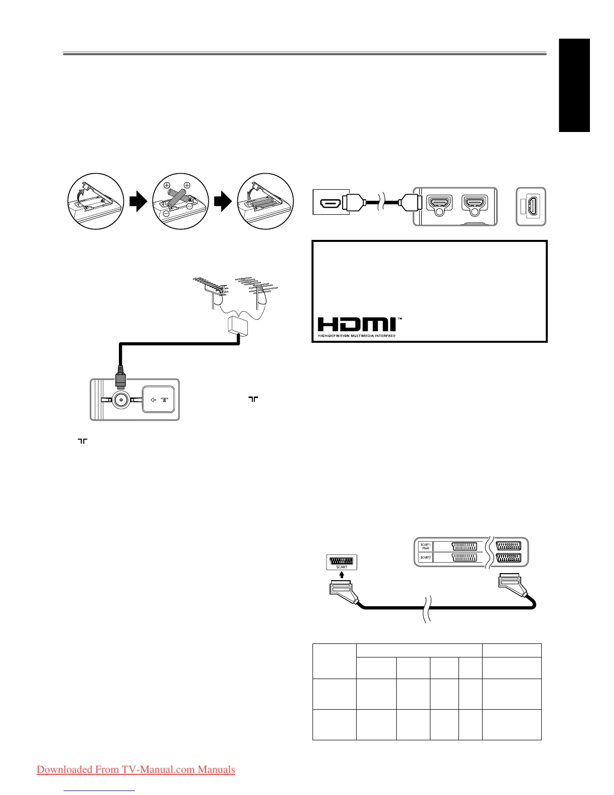 (SCART1 ou SCART2) de cet unité. Utilisez un câble scart (non