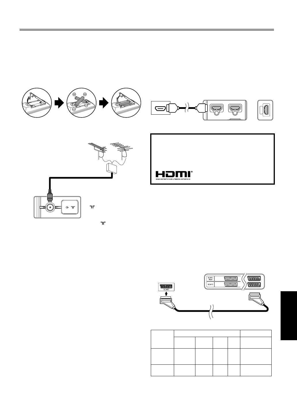 1) Connect an RF cable (not supplied) to (Aerial) input jack