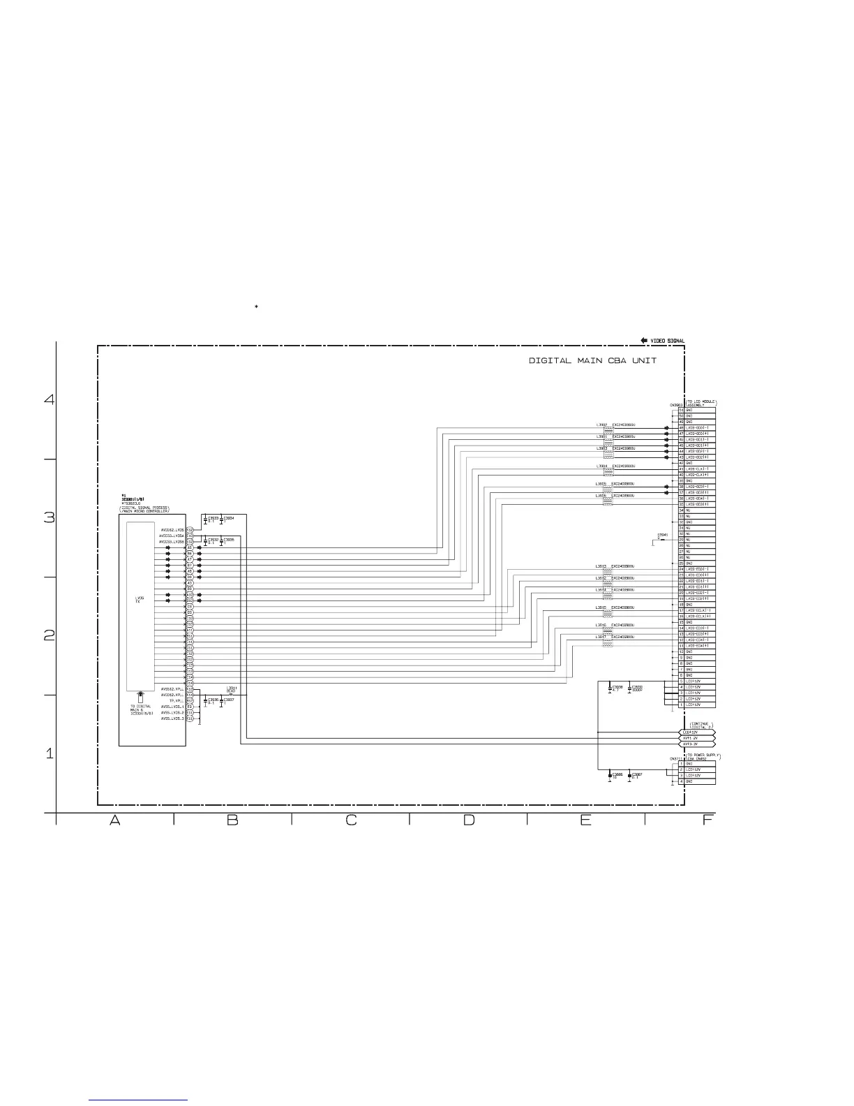 IC3301 is divided into six and shown as IC3301 (1/6) ~ IC3301 (6/6) in this Digital Main Schematic Diagram Section.