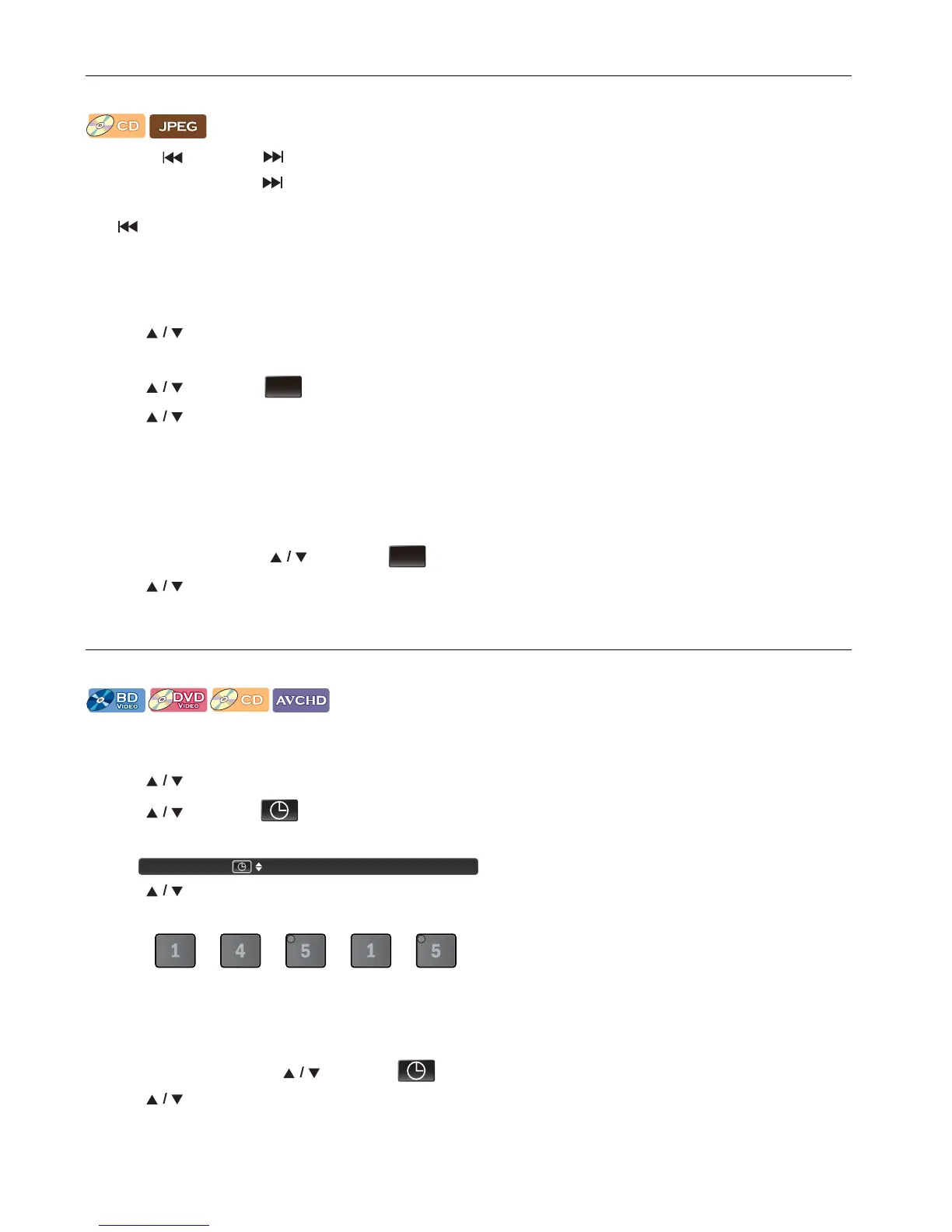 Press it repeatedly to go to the previous Track / File. The Track / File will move backward one at a time.