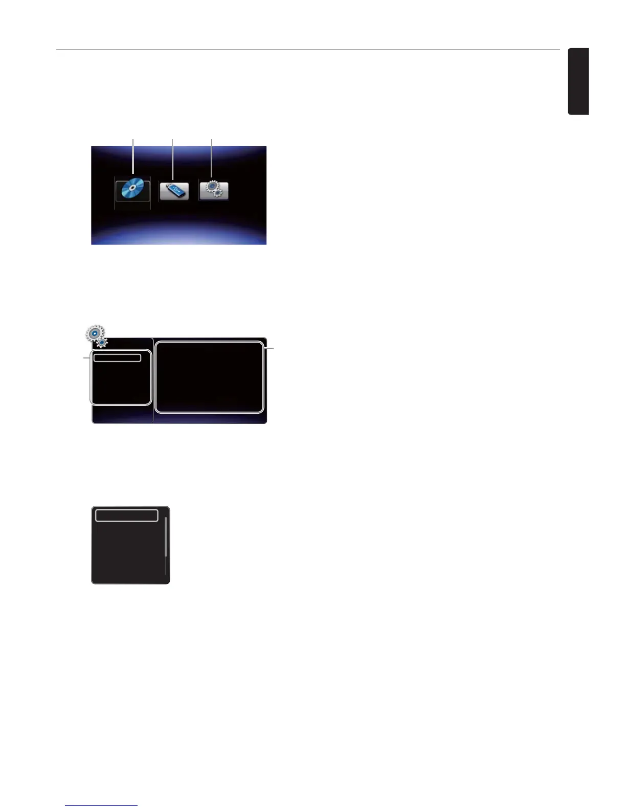 1. “Disc”: Initiates playback of inserted disc, displays a list of Tracks / Files or the Media Filter Menu