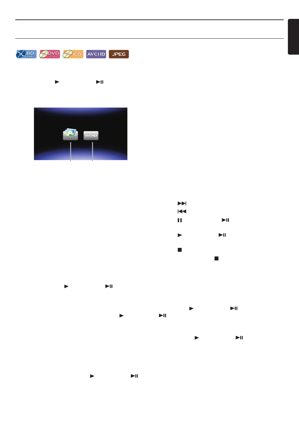 • For Blu-ray Disc™ / DVD / audio CD or a disc containing only one type of file, playback will start automatically. If