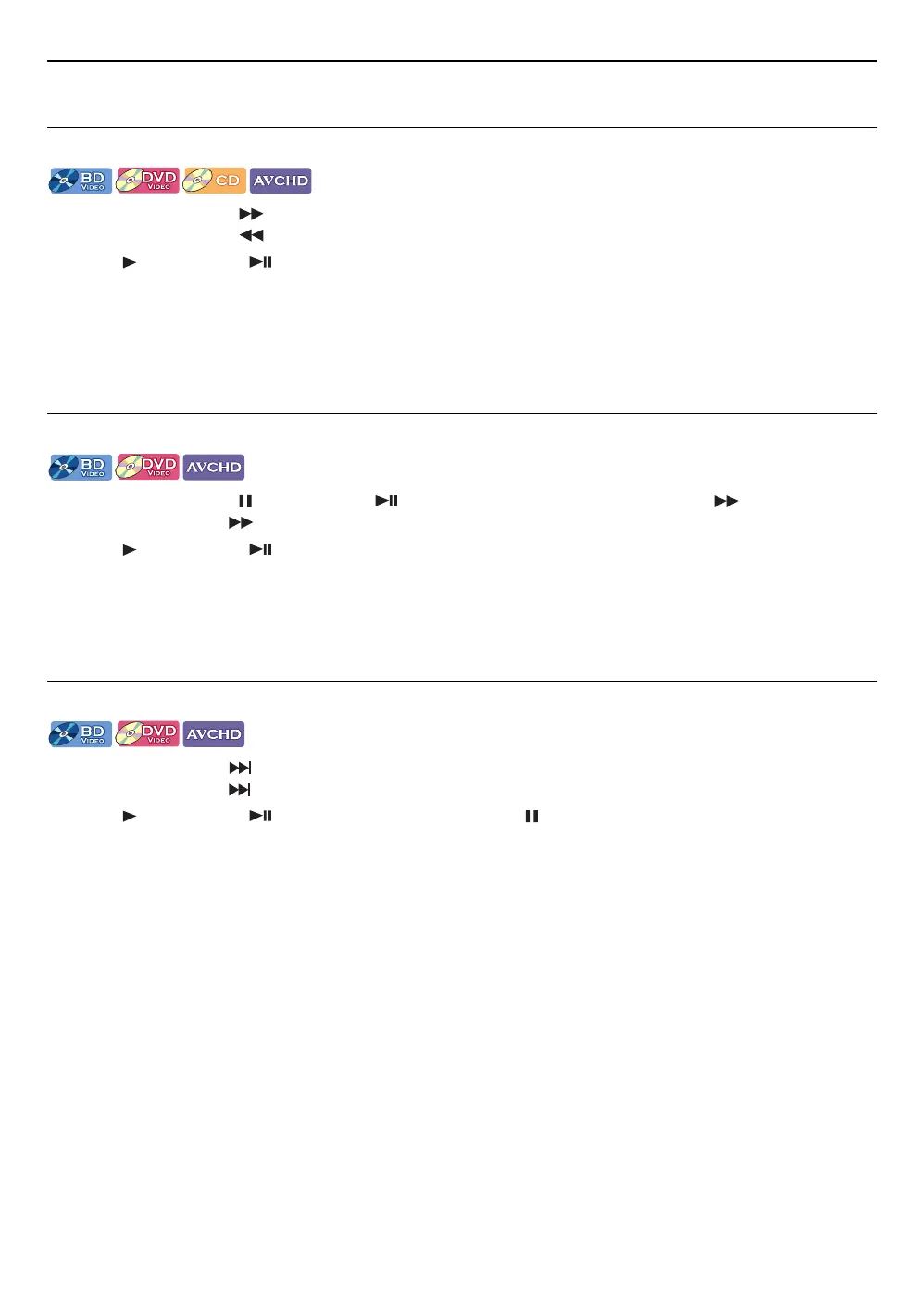 • For audio CD, Fast Forward / Fast Reverse search between different files are not available.