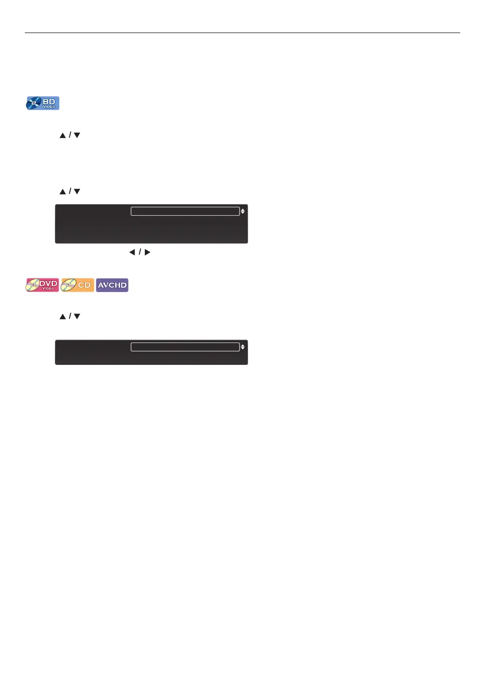 • [AUDIO] may not work on some discs with multiple audio streams or channels (e.g. DVDs that allow changing audio