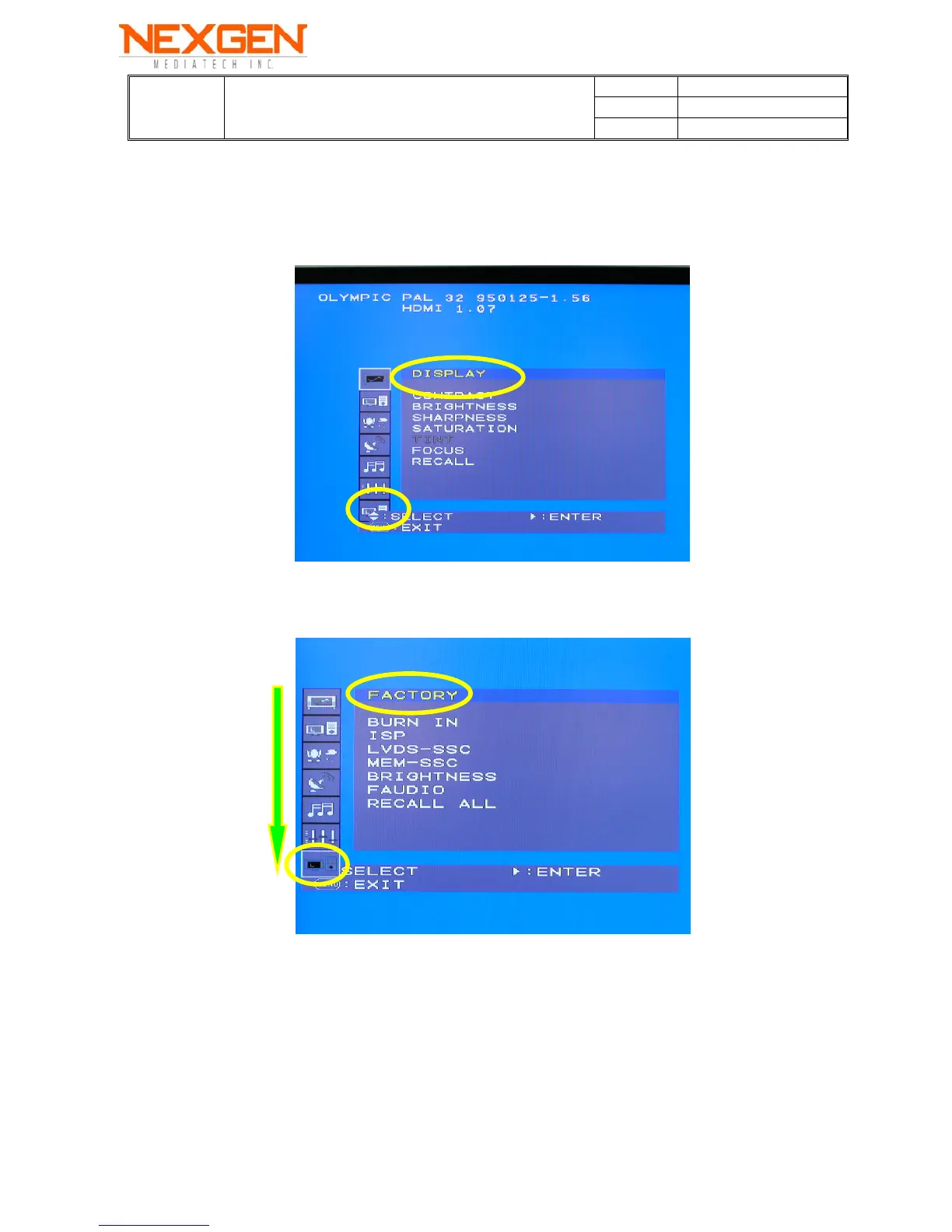 Showing F/W Version in theFactory Mode.