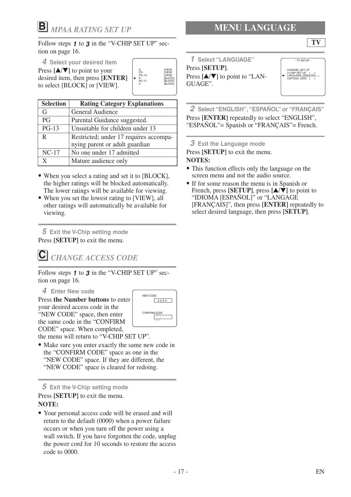in the “V-CHIP SET UP” sec-