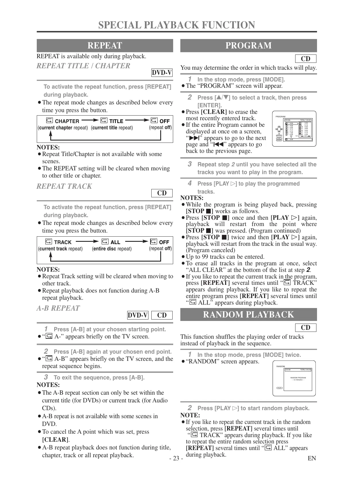 chapter, track or all repeat playback.