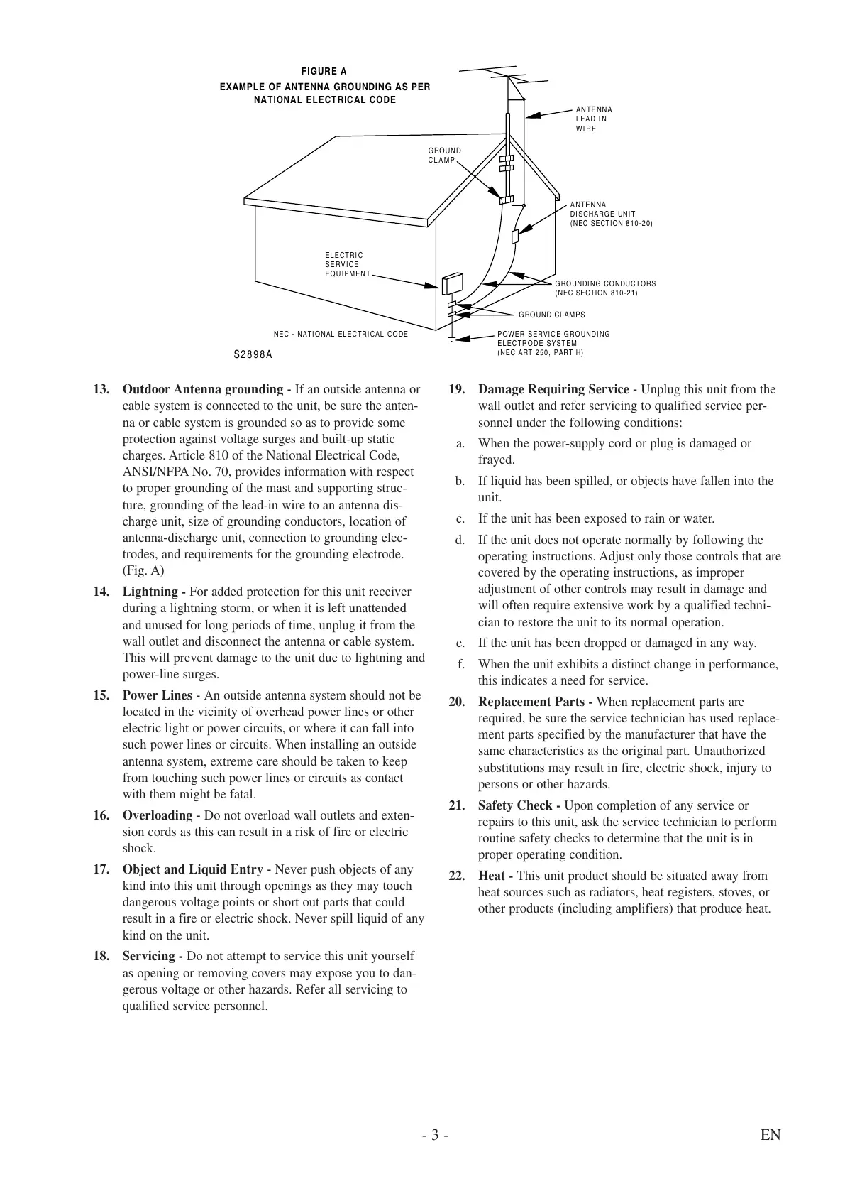 13. Outdoor Antenna grounding - If an outside antenna or