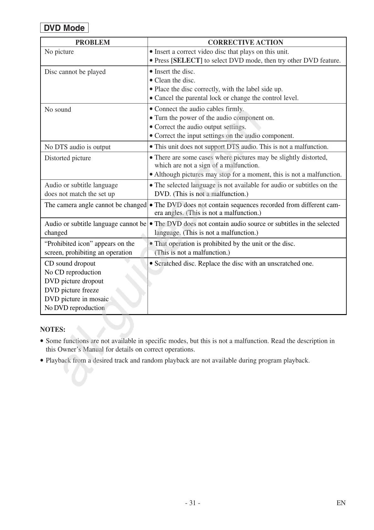 DVD. (This is not a malfunction.)