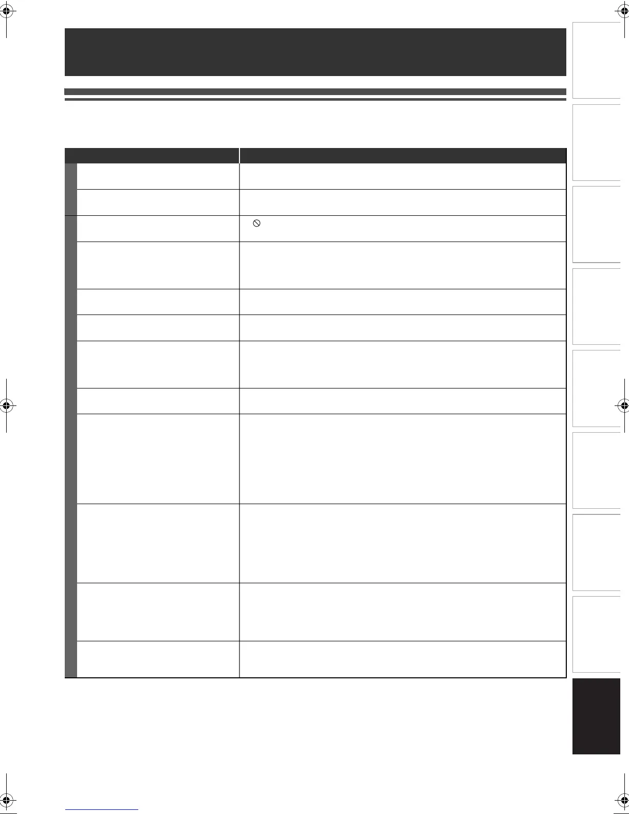 The unit does not function. • “ ” or error message appears if the operation is prohibited.
