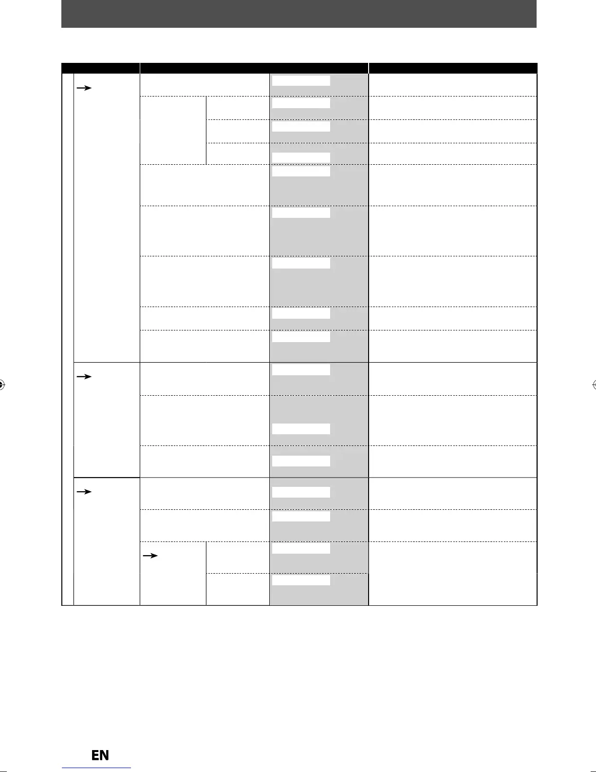 Setup Items (highlight is the default) Contents