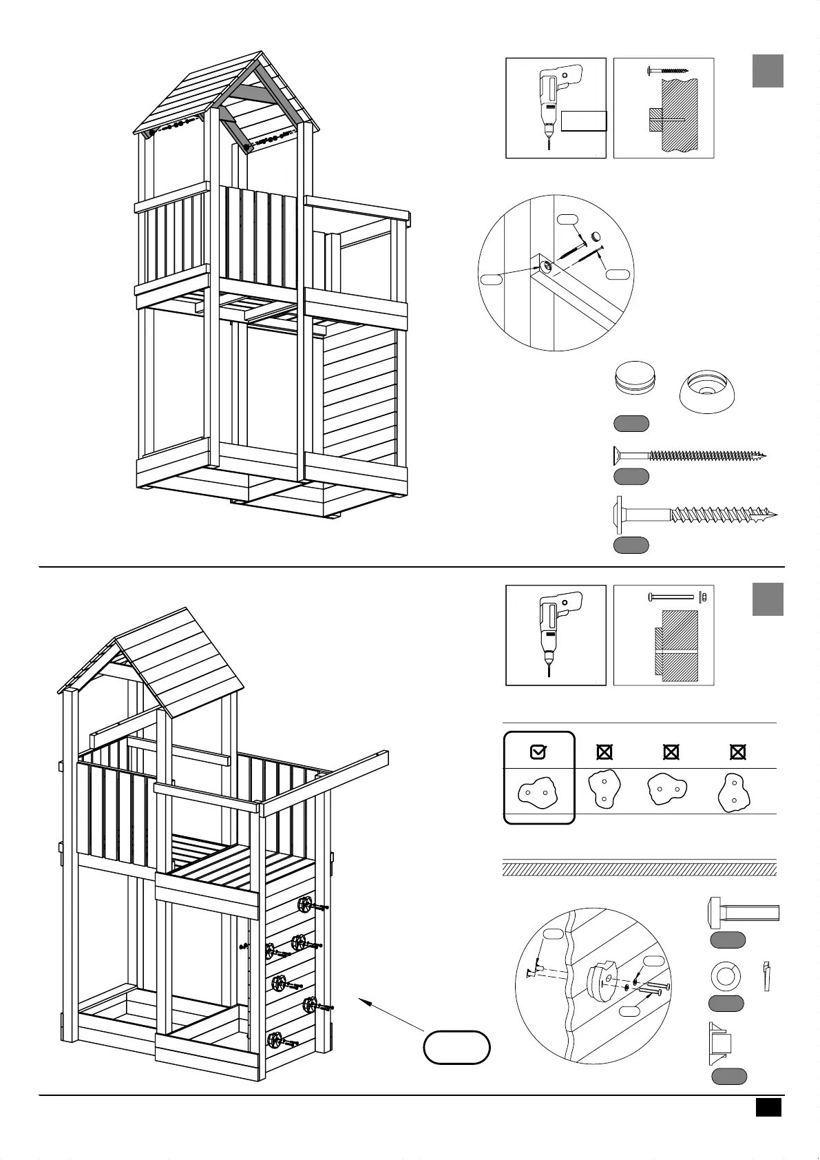 Zgodne z normą PN-EN 71 stosuj zalecenia producenta odnośnie odległości oraz metody mocowania poszczególnych elementów