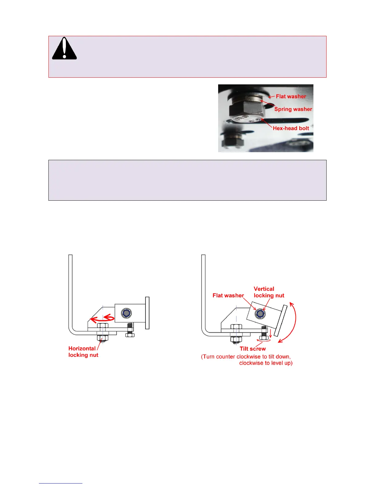 Reassemble the wall bracket system on site using the flat washer and the horizontal locking nut supplied
