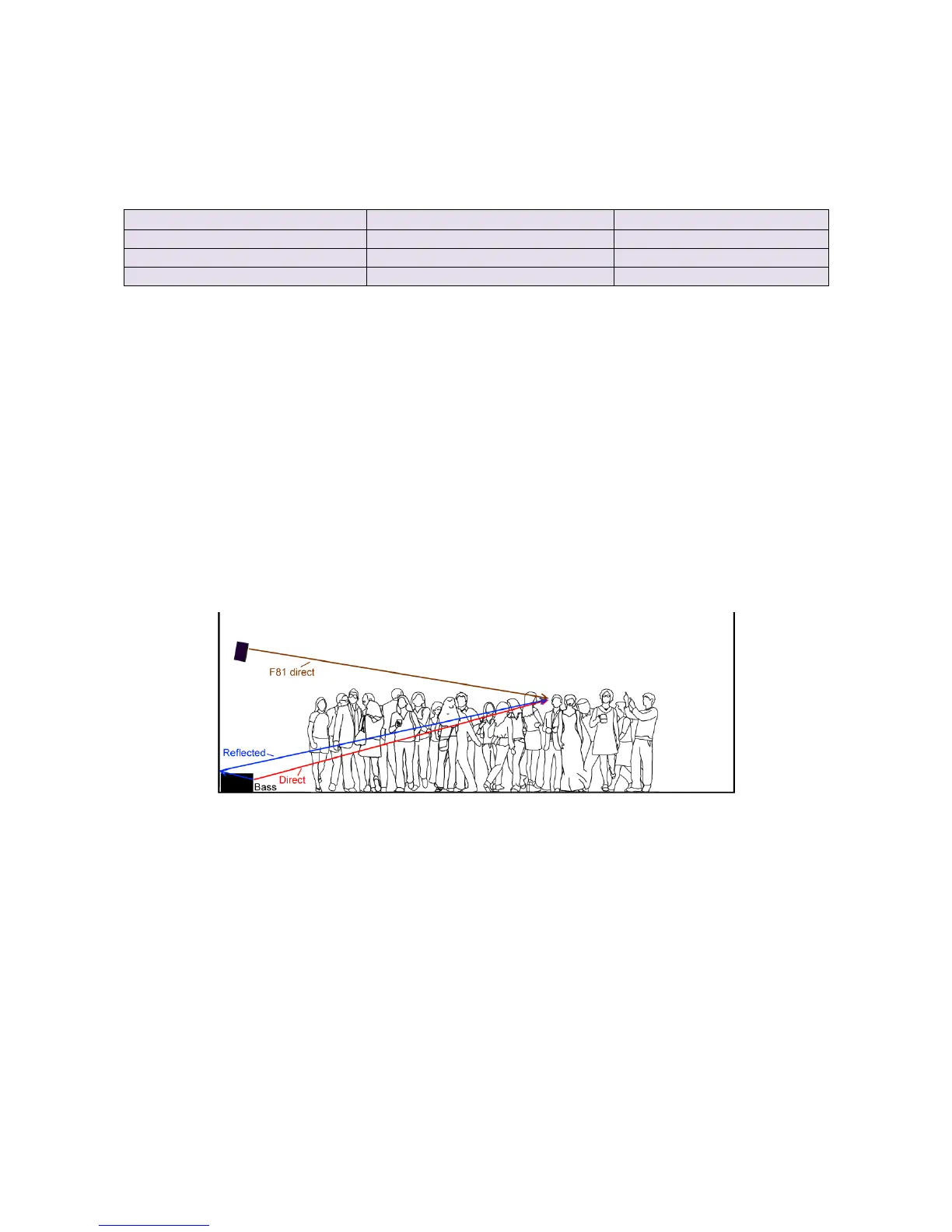 later, by bass sound reflected from the rear boundary (blue).