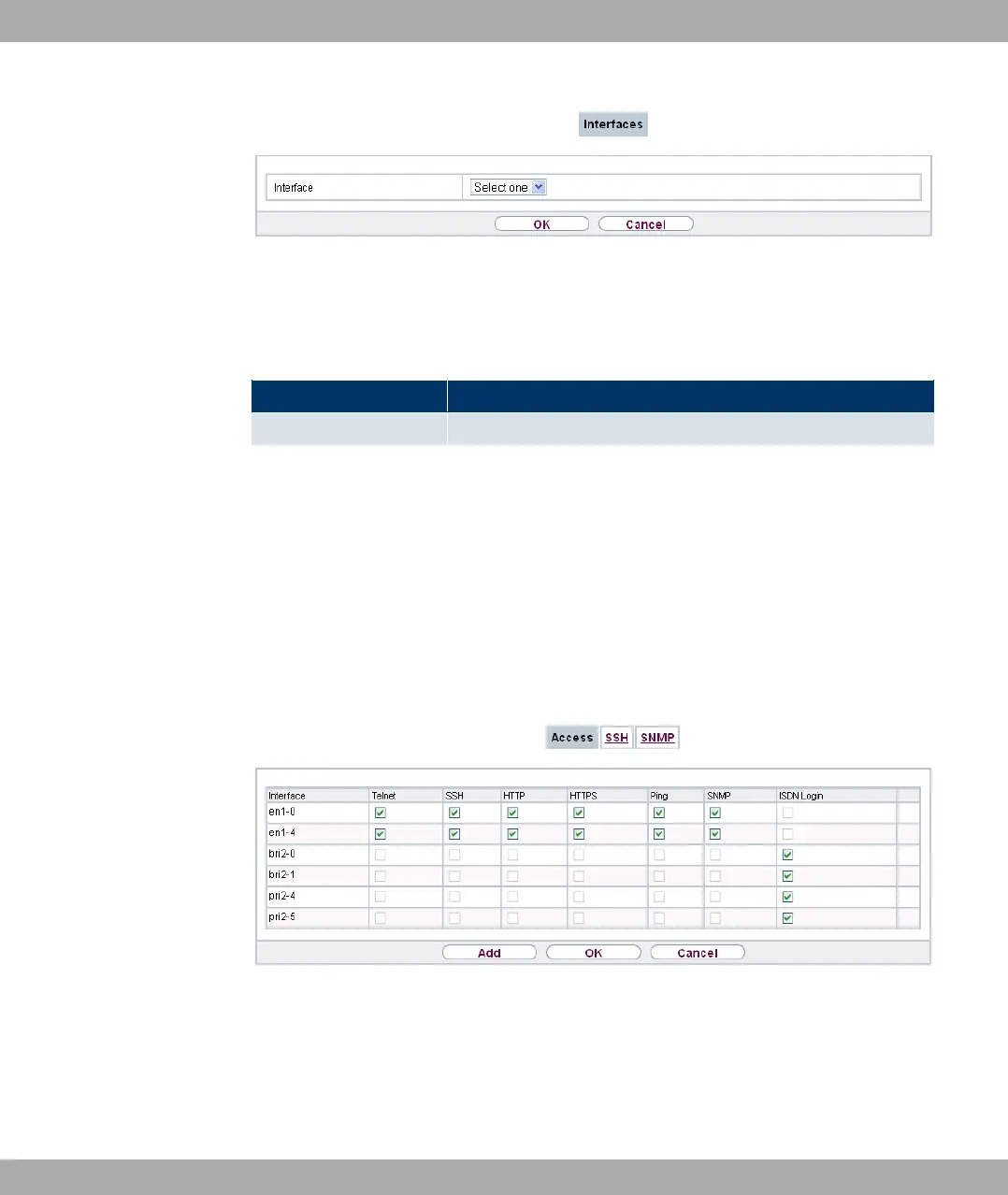 In the Administrative Access->Access menu, a list of all IP-configurable interfaces is dis-