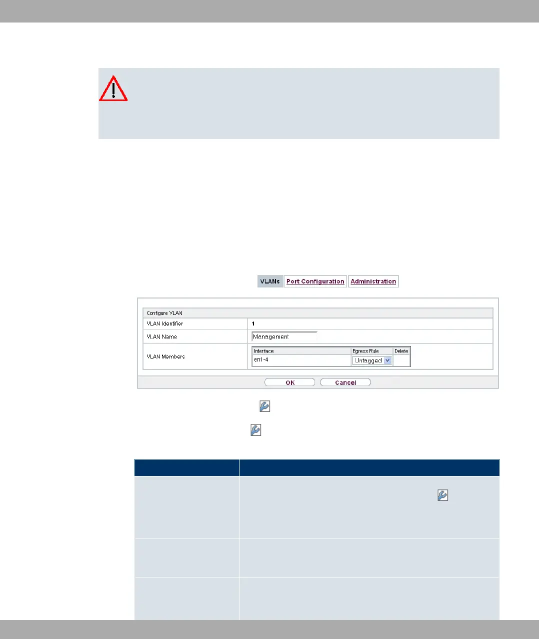 In this menu, you can display all the VLANs already configured, edit your settings and cre-